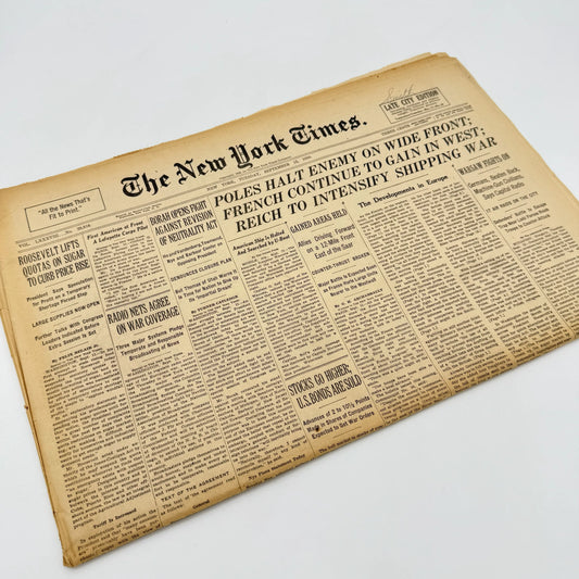 The outbreak of WWII in The New York Times — September 6, 7, 8, 10, and 11 — Sold as a set