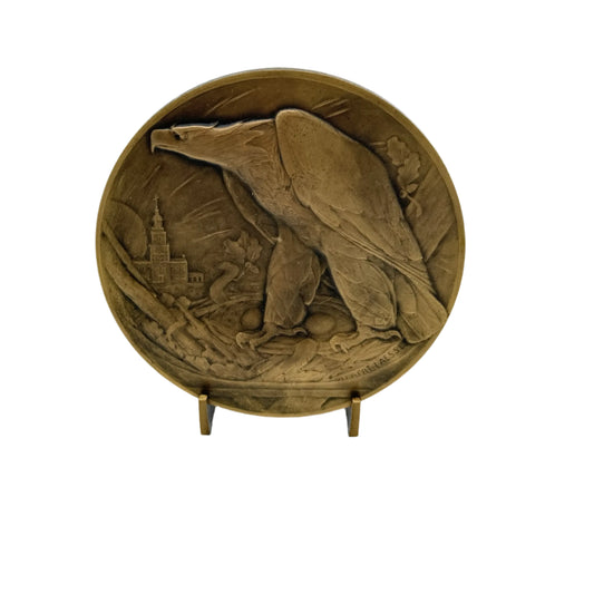 Carved gold leaf eagle with sailing ship — 42" wide — One of a kind