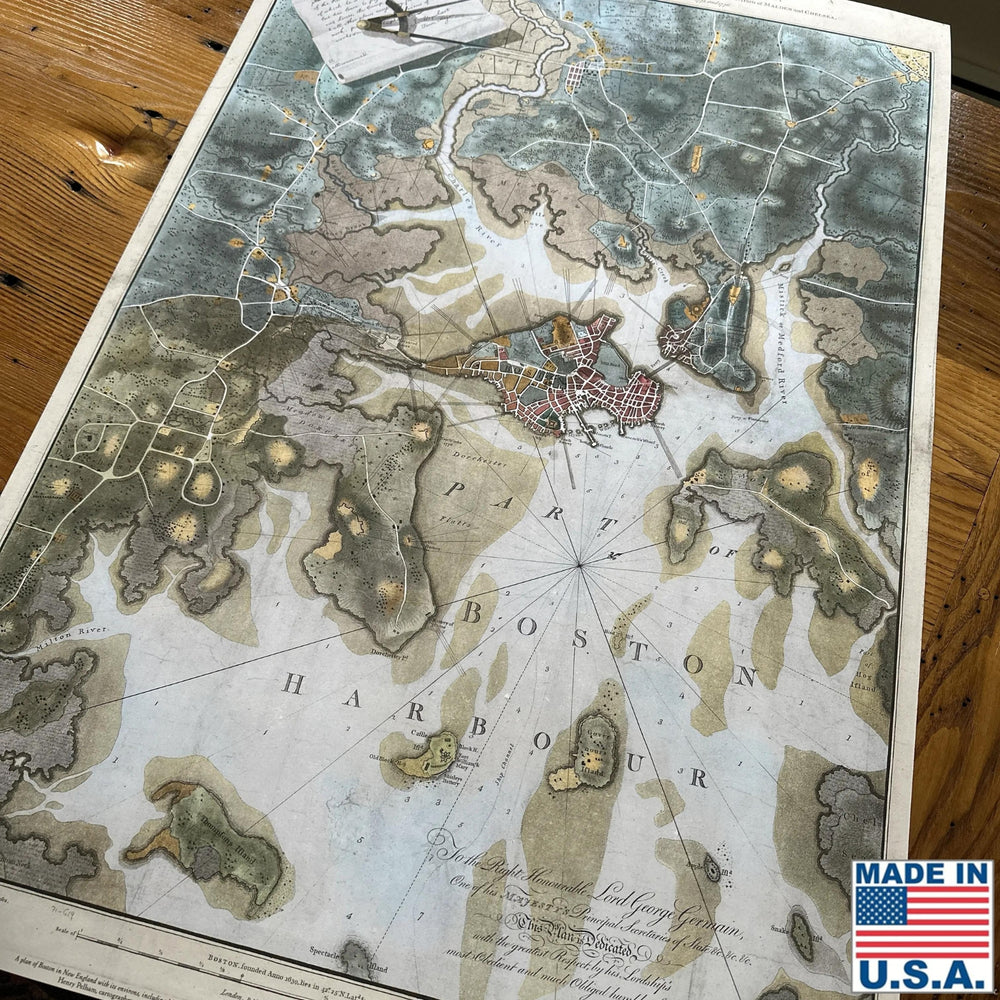 • Boston Under Siege: Henry Pelham's Boston 1775-1776 colored aquatint map in an archival, full-sized print