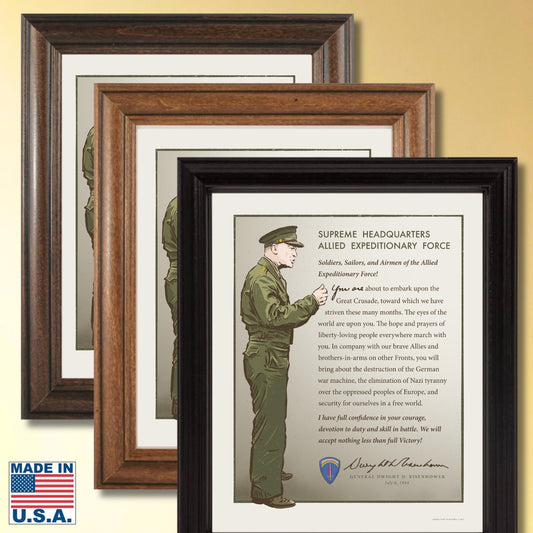 Gen. Dwight D. Eisenhower on D-Day — Original print framed in a solid wood frame made in America