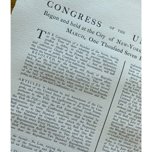 The Bill of Rights originally printed by Bennett Wheeler (Providence, RI) — from the Printing Office of Edes & Gill