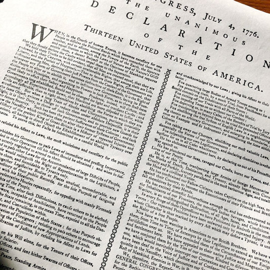 Dunlap broadside of the Declaration of Independence - Three-quarter size