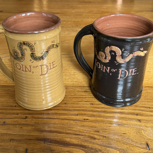 "Join or Die" Tavern Mug — Traditional redware made by hand in America