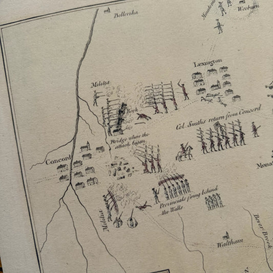 1775 map with Battle of Lexington and Concord and Battle of Bunker Hill — Archival print at actual size