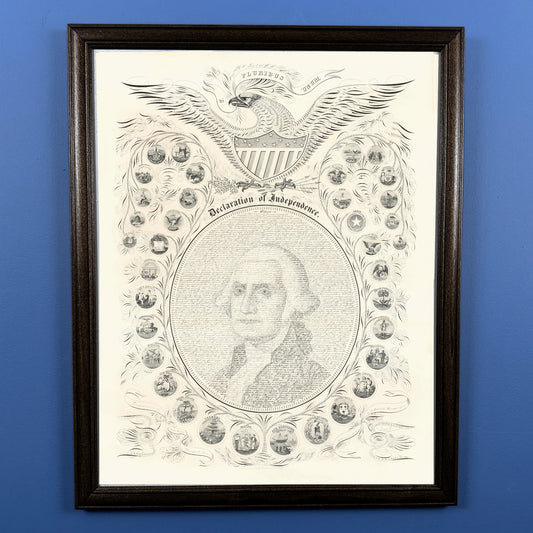 "Declaration of Independence" Calligraphy of George Washington with the seals of 16 states — Archival print — Available framed or unframed