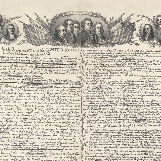 Large print with the marked up draft of the Declaration of Independence Archival print