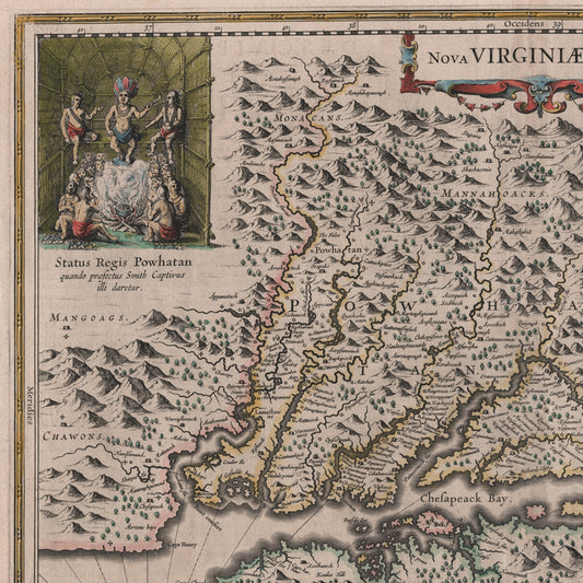 1630s Map of Virginia — Archival print — Nova Virginiae Tabula