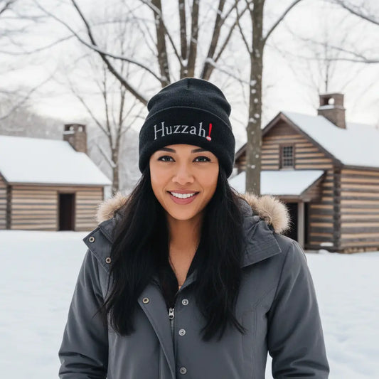Embroidered "Huzzah! 1776" Fleece-Lined Tall Knit Cap