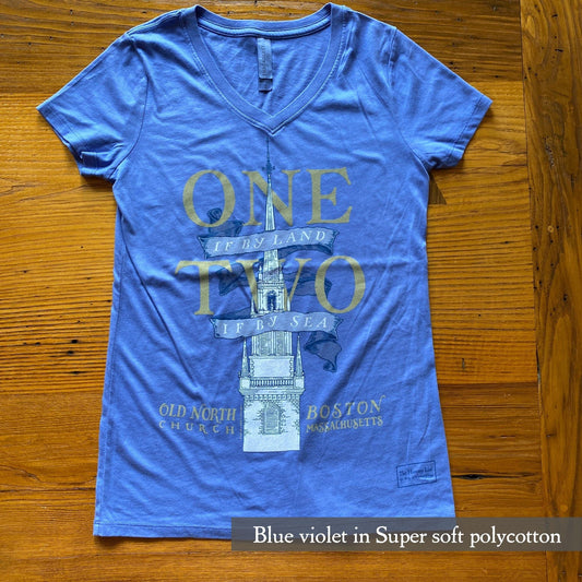 "One if by land" celebrating the midnight ride of Paul Revere Women's v-neck shirt