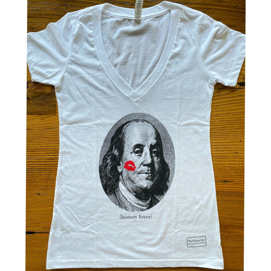 "History Lover" V-neck T-shirt with Ben Franklin