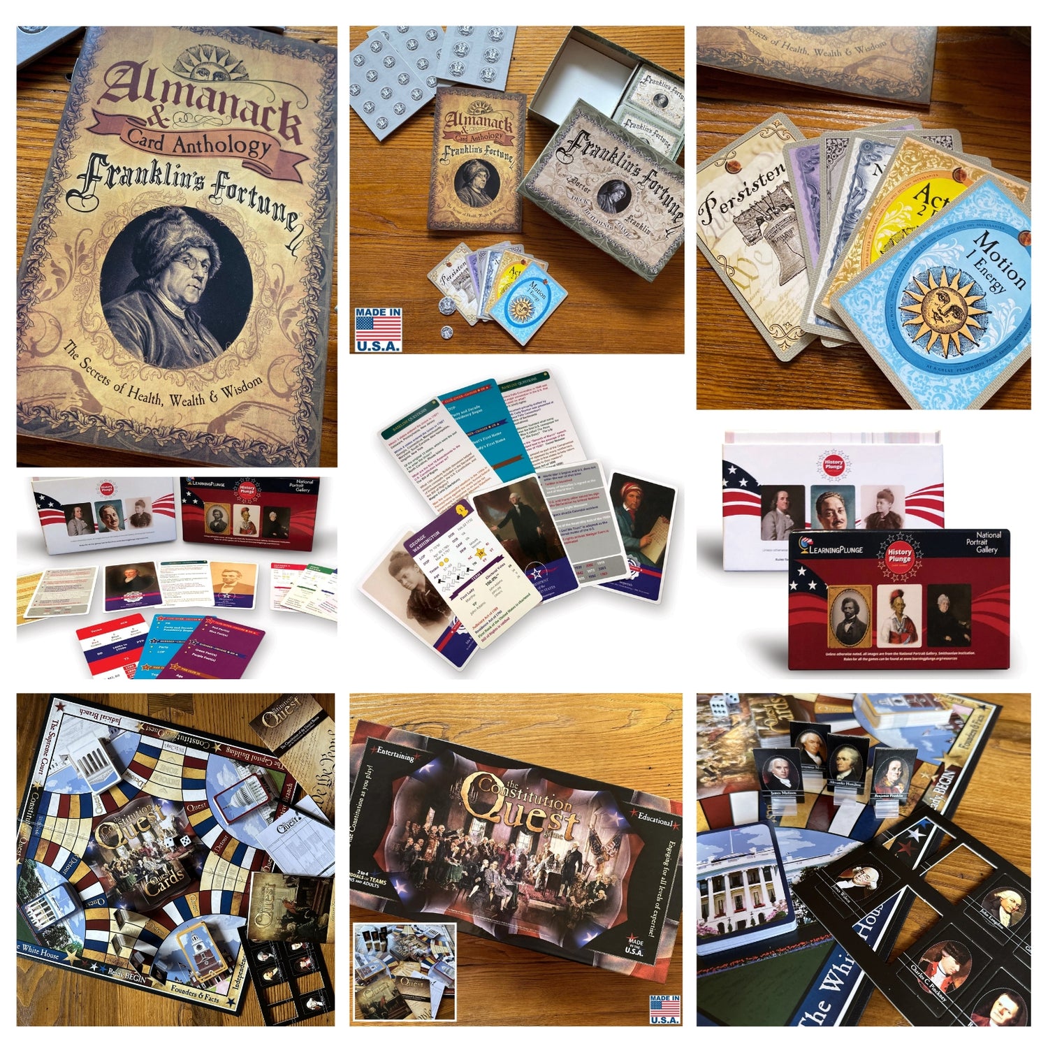 Make game nights more historic with these board games created for history lovers. Kids and adults alike will learn valuable life lessons from Benjamin Franklin in the Franklin's Fortune deck building game and players of the HistoryPlunge game will learn about the U.S. Presidents, important events in history, notable people that shaped history, and more from 1492 to the present in this new game. And our new Constitution Quest game is hailed by scholars everywhere as the most fun and easy way to learn the U.S. Constitution.