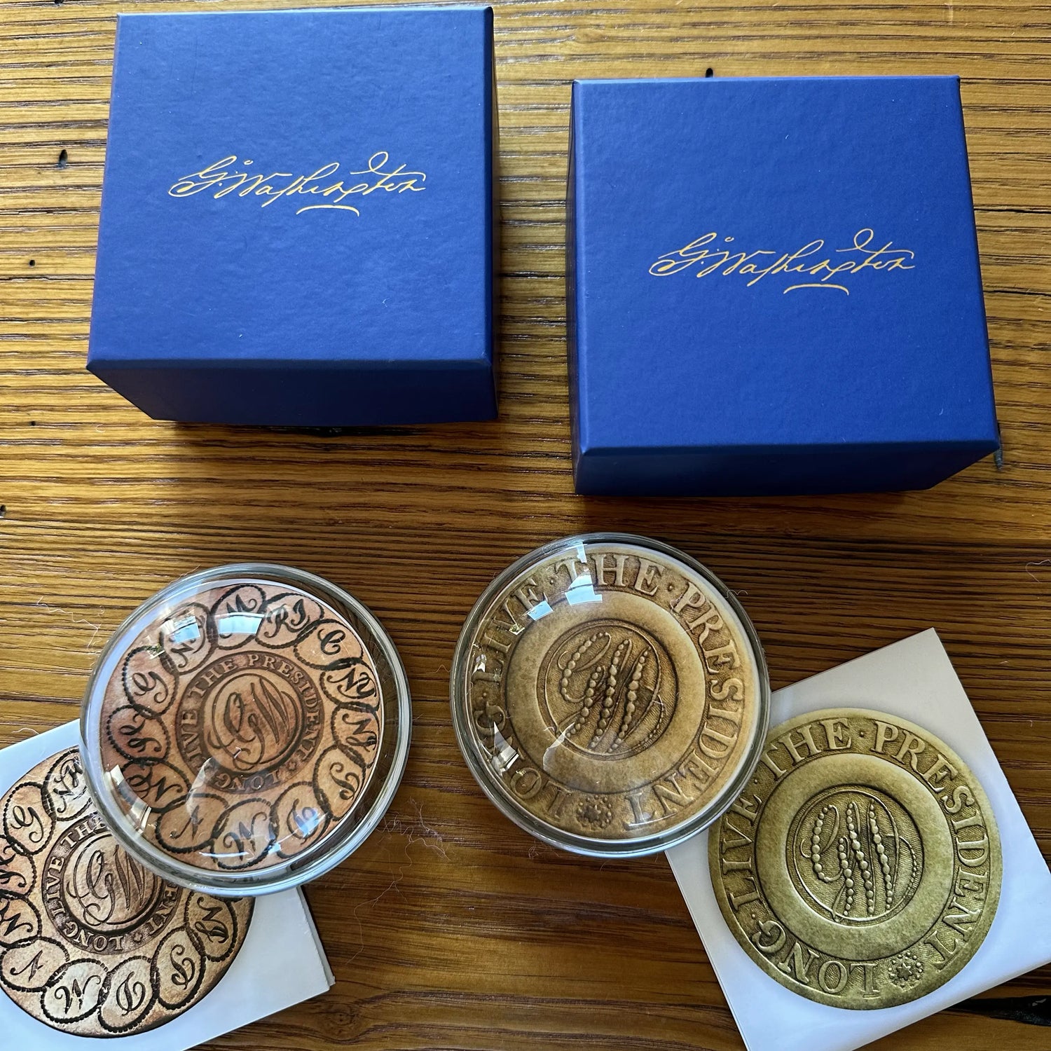 Glass George Washington Inaugural Button Paperweights — Made in America