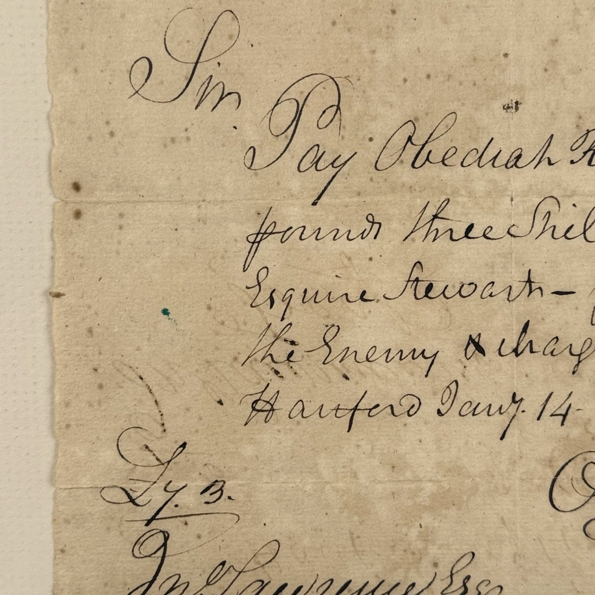 This handwritten Revolutionary War-era document is dated January 14, 1778 and originates from Hartford, Connecticut.