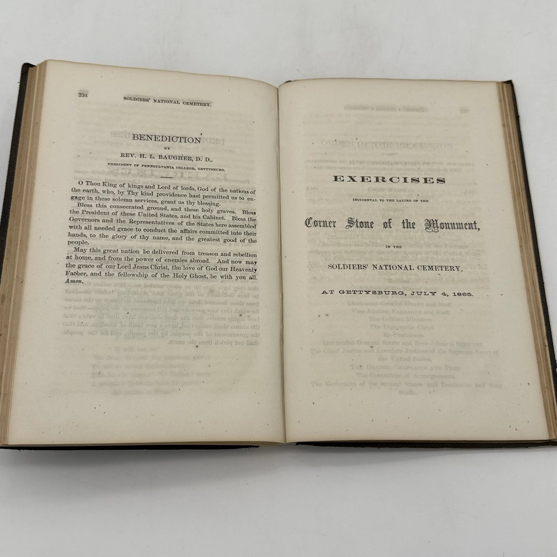 - The benediction given by Rev. H.L. Baugher, D.D. Engraved frontispiece (The Gettysburg Battlefield & Hospitals).