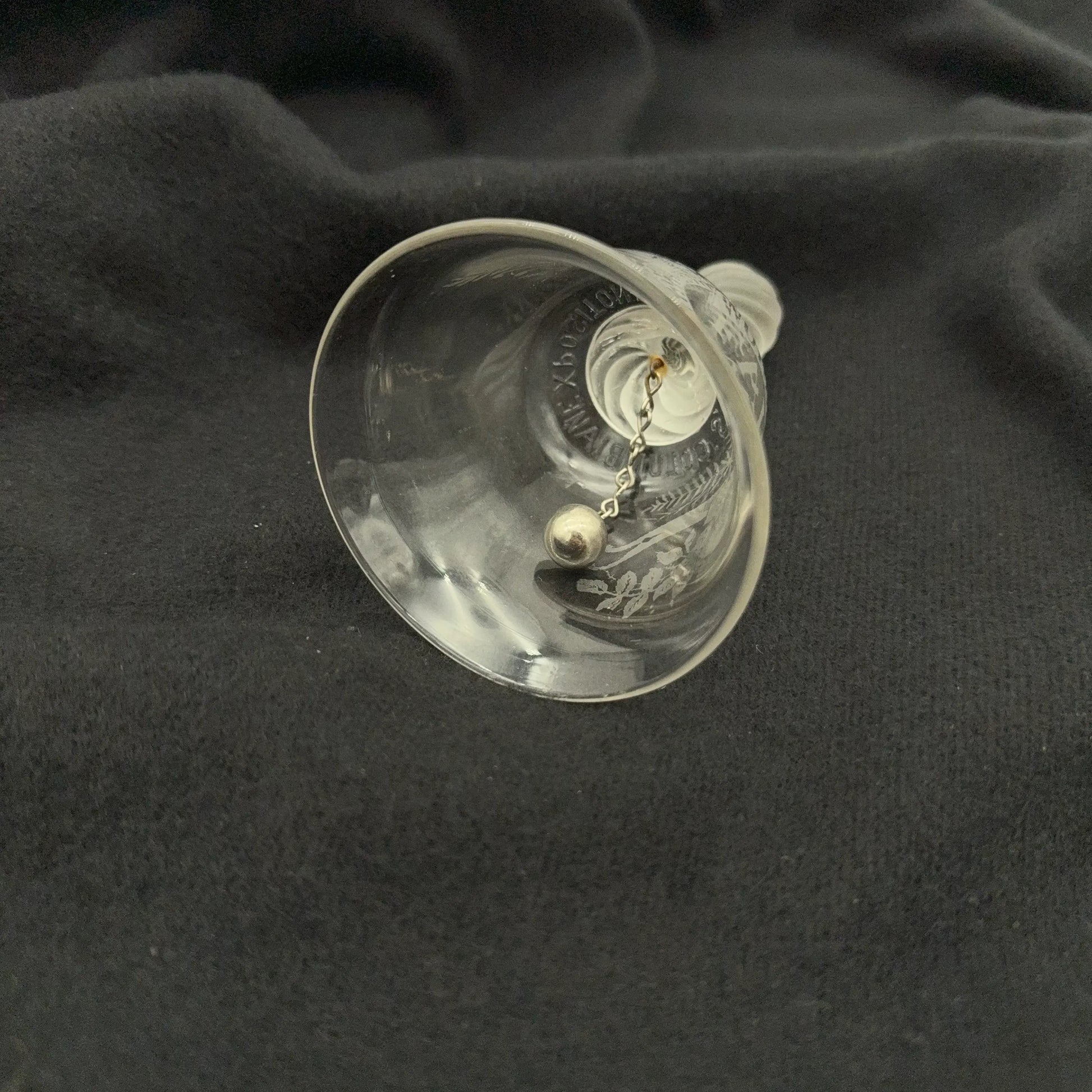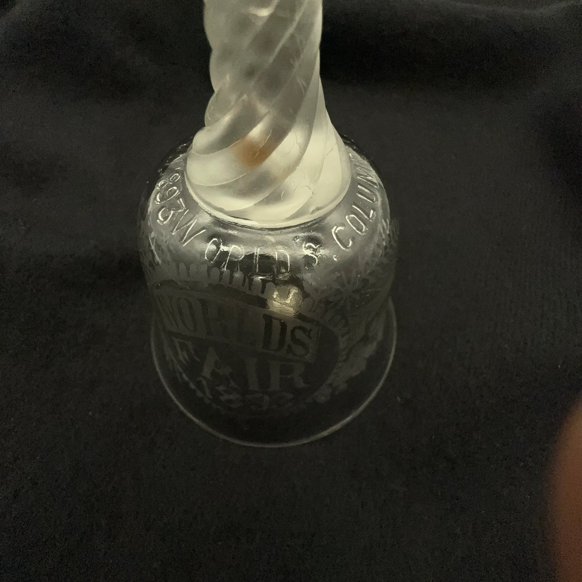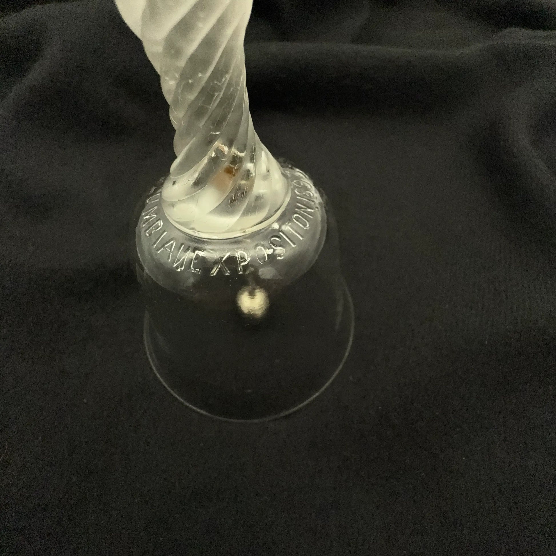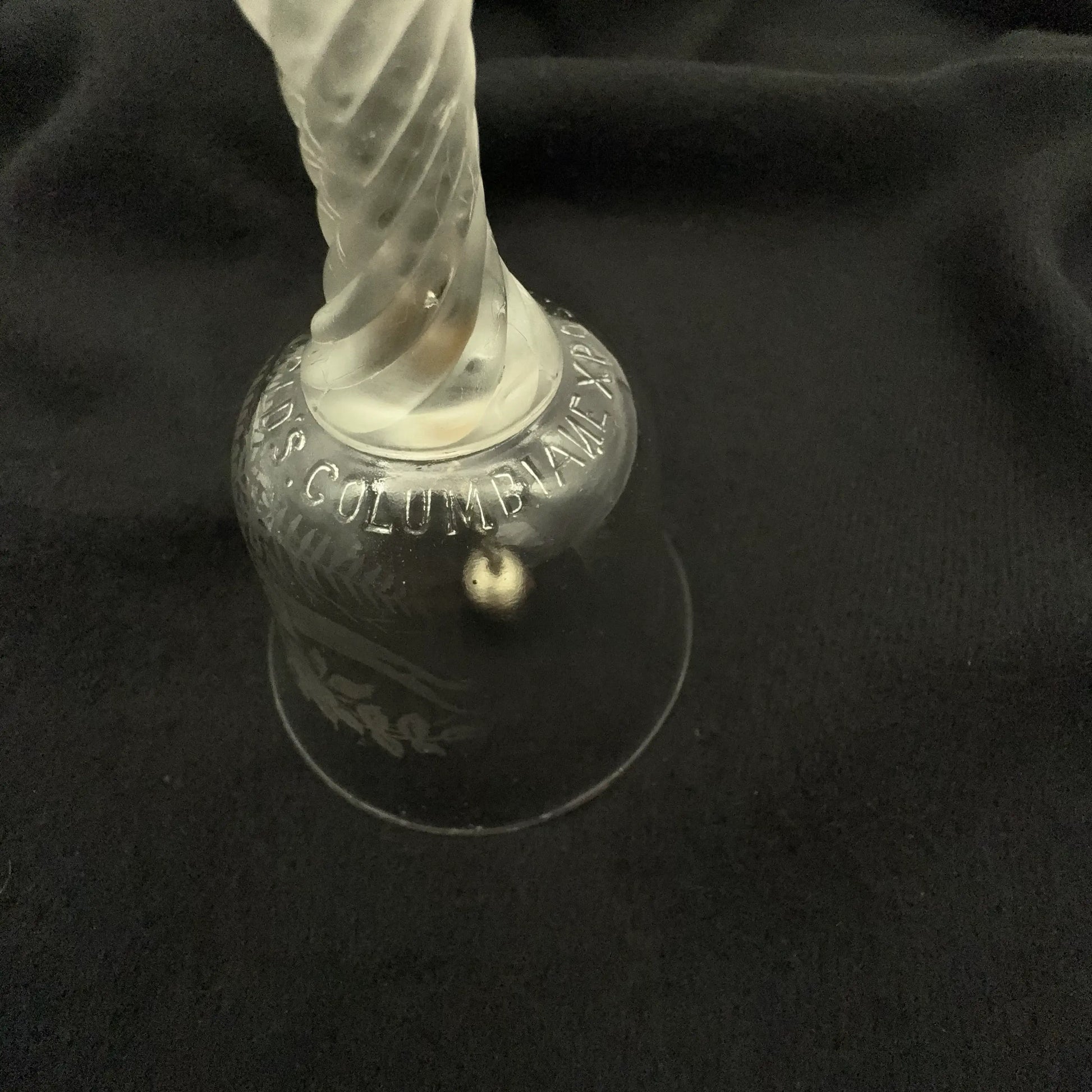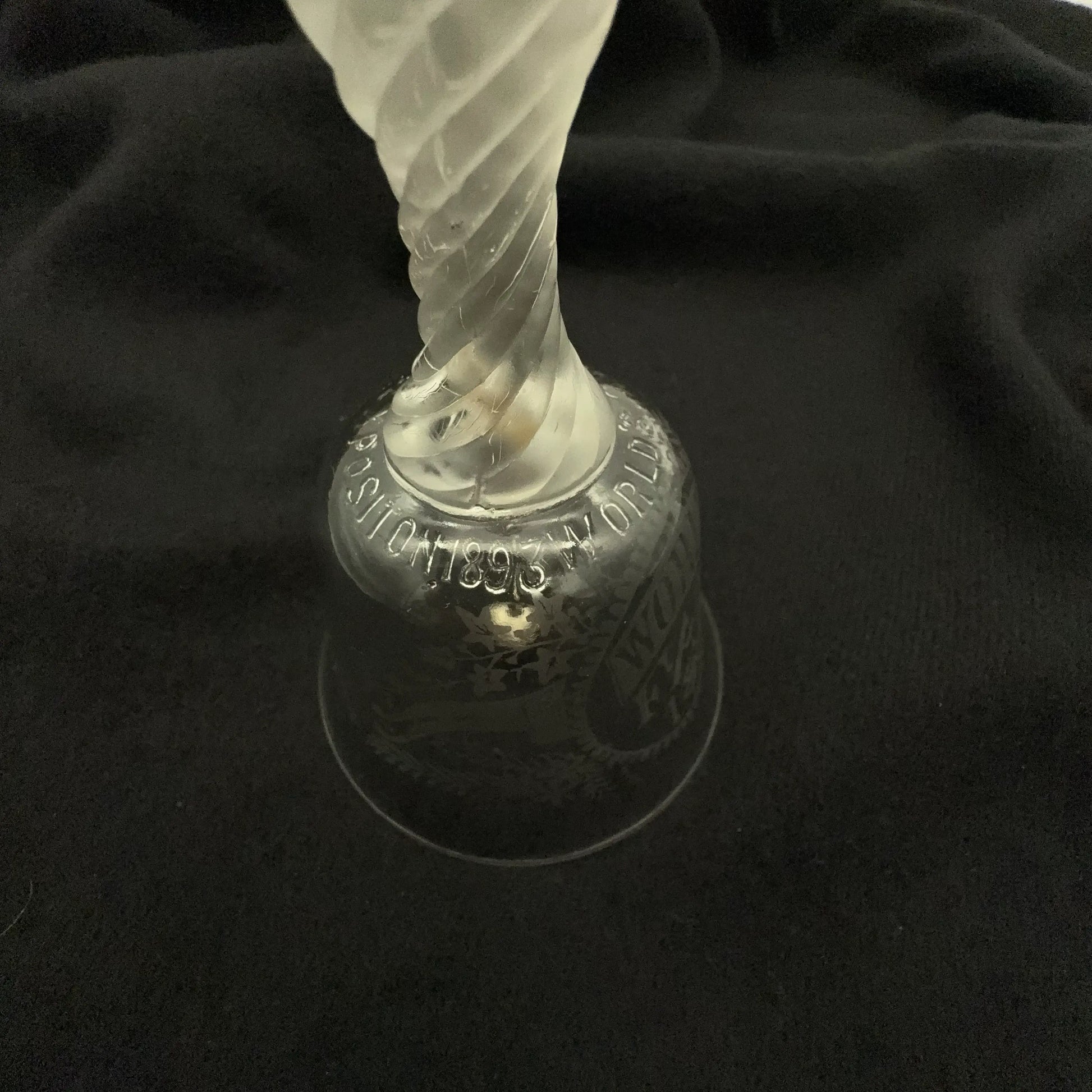 Clear pressed glass bell made on the grounds of the World's Columbian Exposition by the Libbey Glass Company.