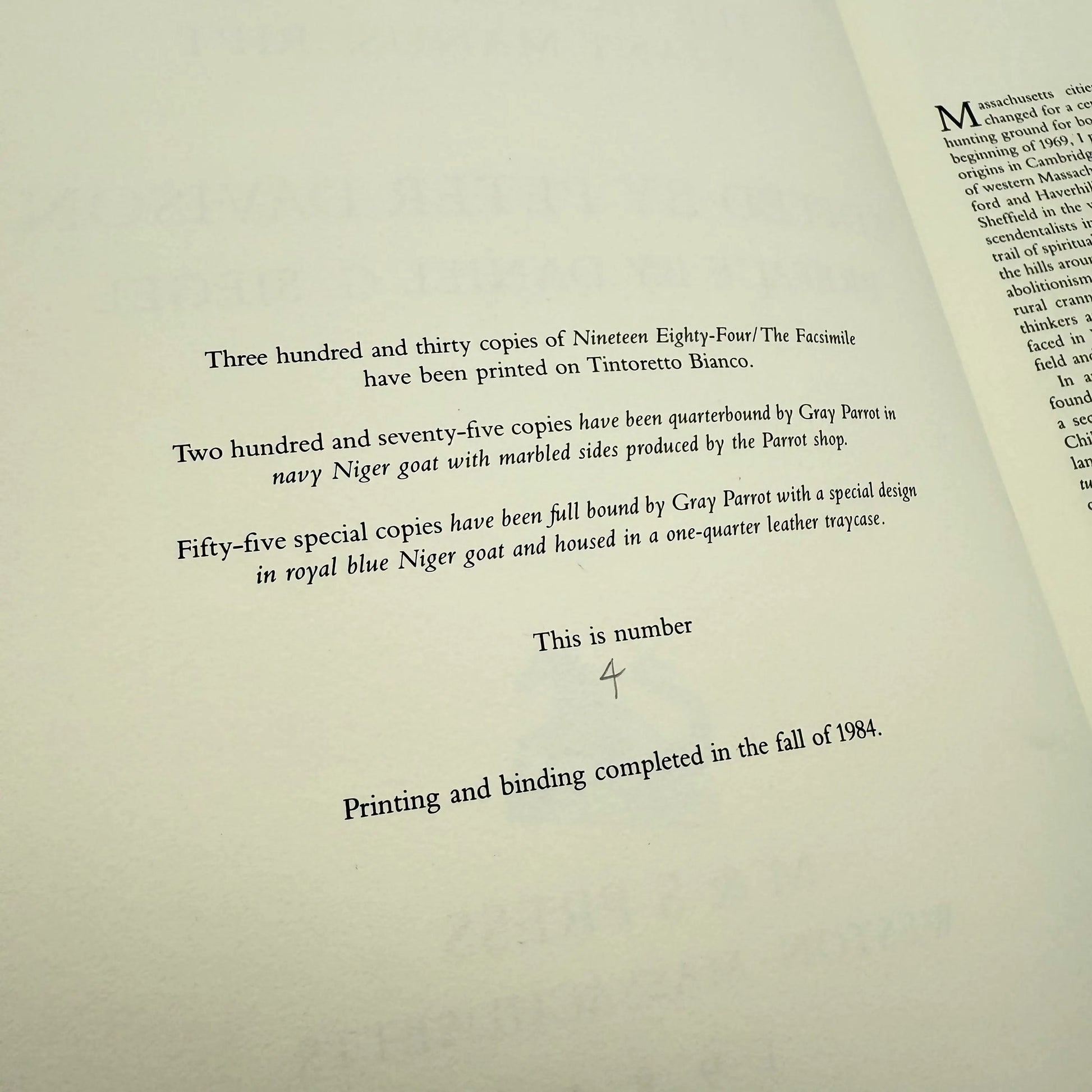 "Three hundred and thirty copies of Nineteen Eight-four/The Facsimile have been printed on Tintoretto Bianco.