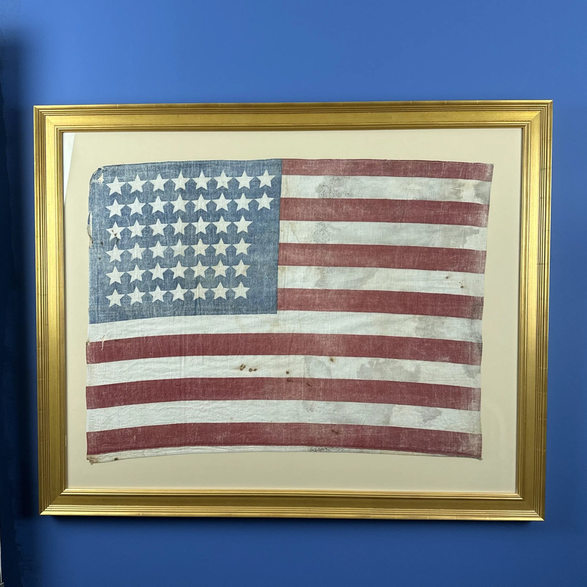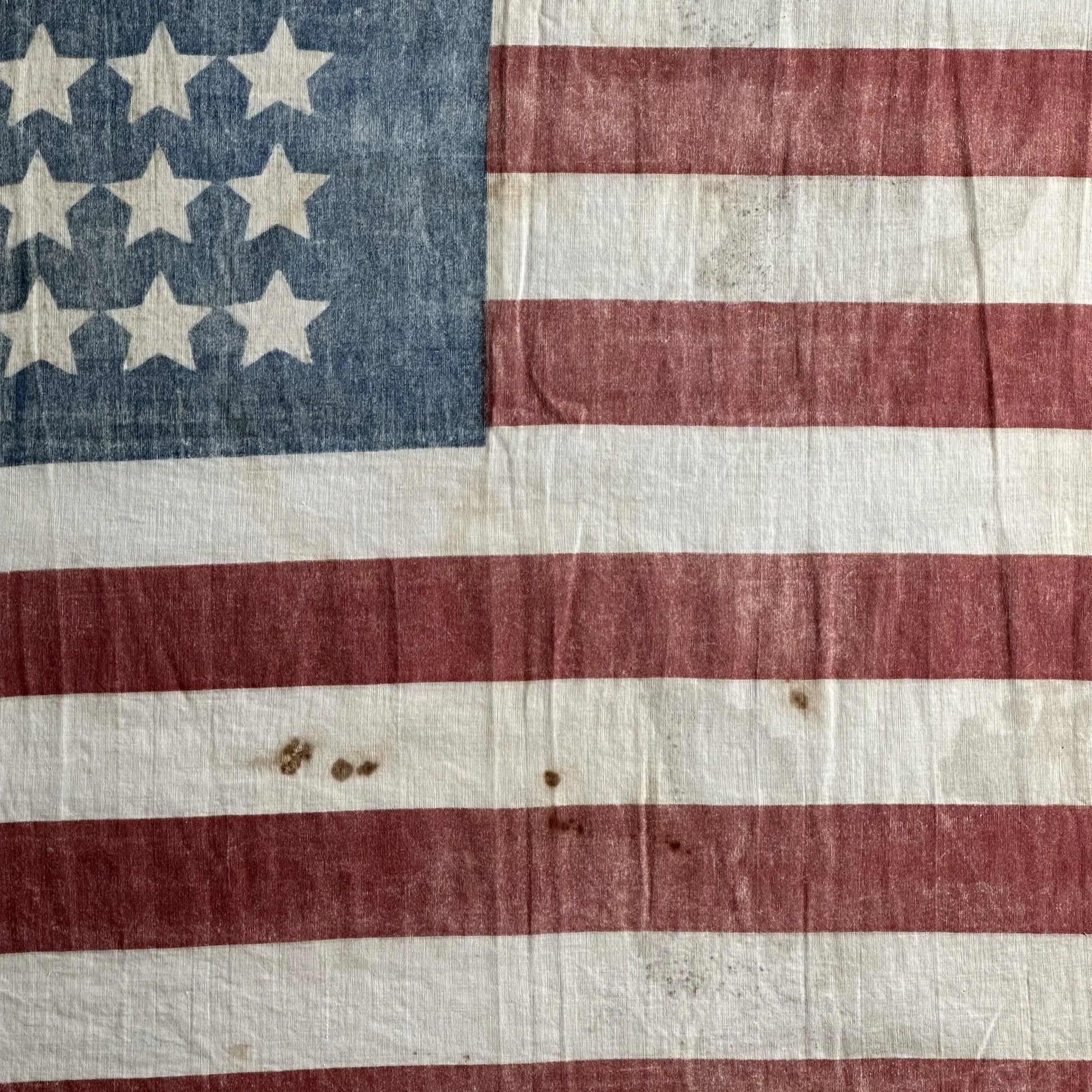 This is by far the oldest flag we've had, and I thought it was especially interesting not just because of the age but the configuration of the stars. There was no effort to make things symmetrical, and it simply looks incomplete, which, too me, makes it especially interesting.