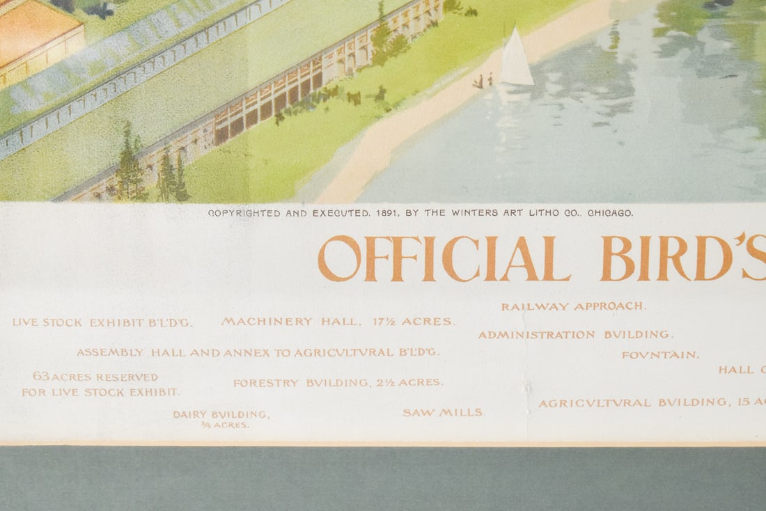 "Official Birds-eye View of the Columbian Exposition; Chicago U.S.A. 1893" — Framed