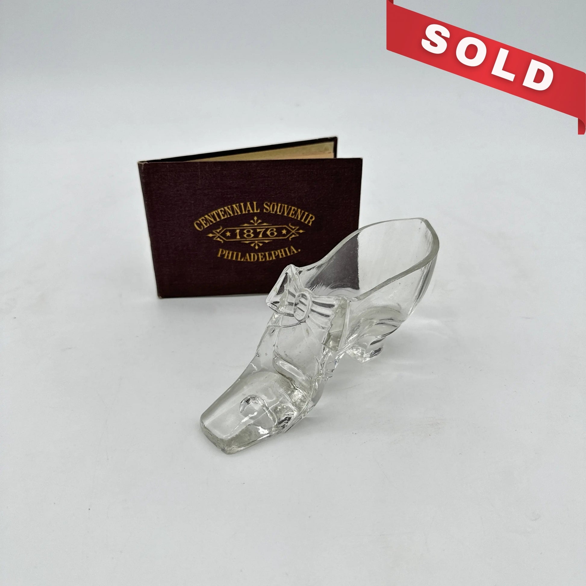- SOLD — Glass shoe + Small foldout booklet of pictures the World's Fair — Shoe is 5.5" long