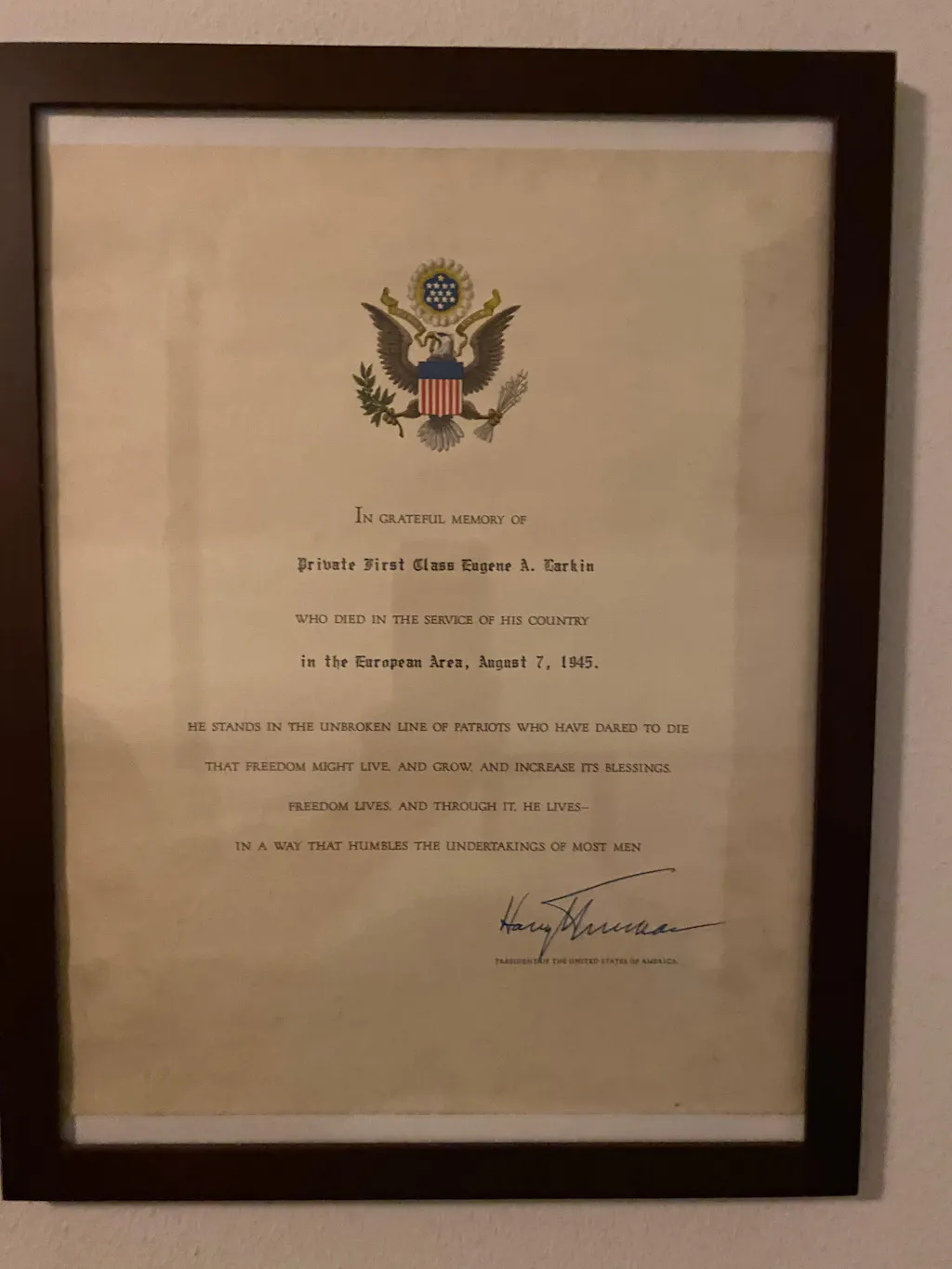 Mom’s dad 18th infantry 2nd wave Omaha beach passed later heath issues Buried outside Paris have the scroll from harry Truman ….