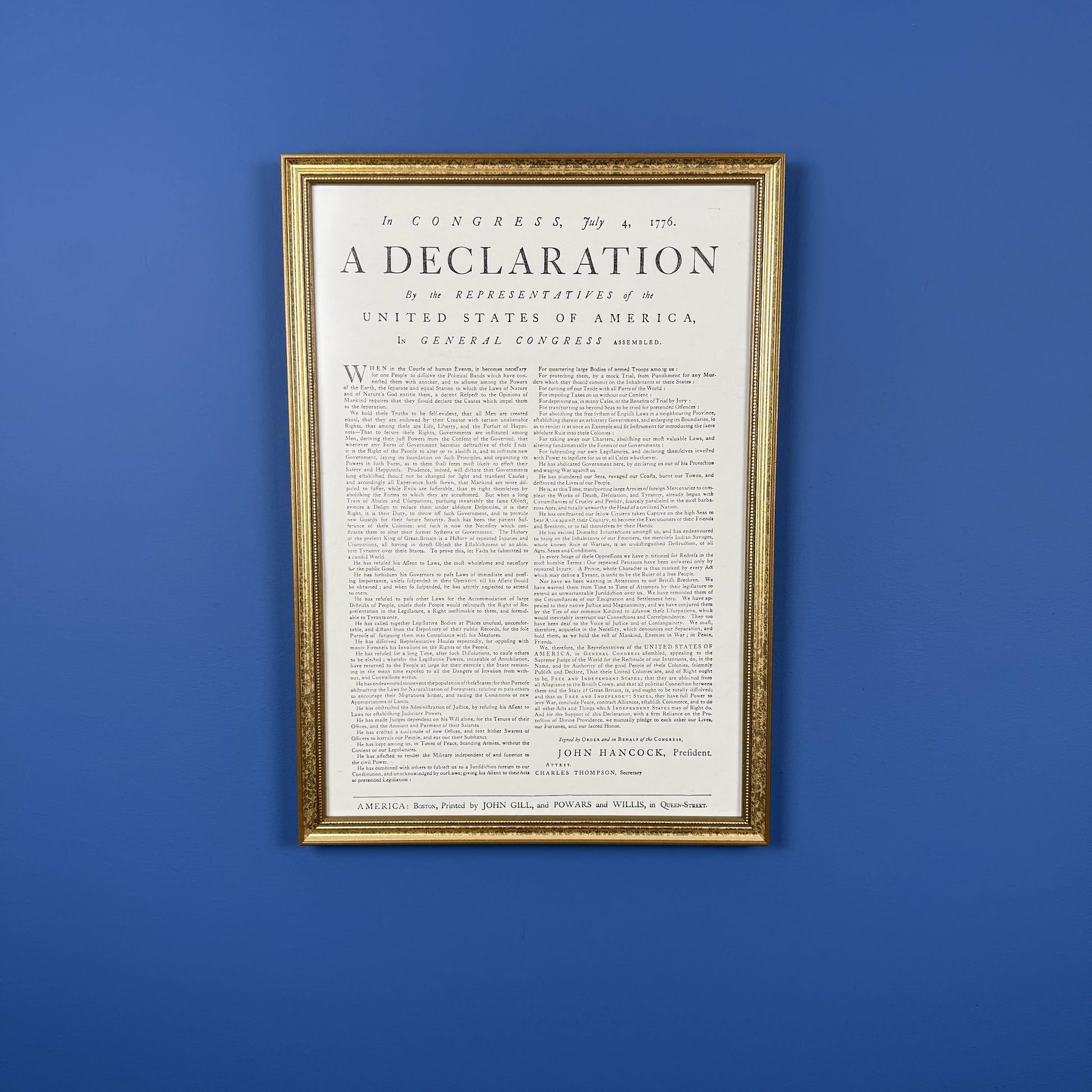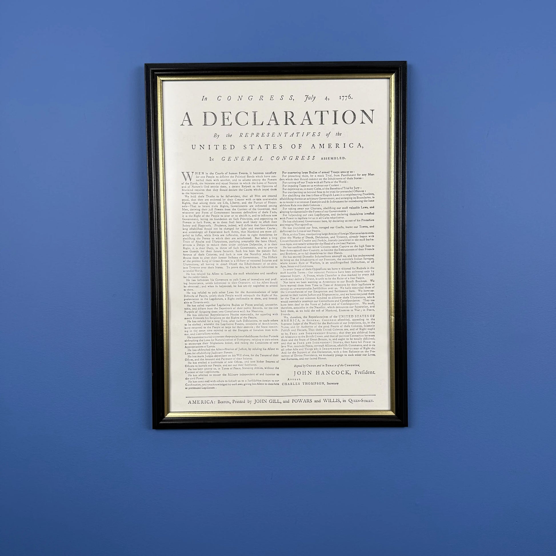 Also available framed in a solid wood, made in America frame with museum-grade, UV-protecting non-glare acrylic with a black and gold finish or an antique gold finish. See additional photos of the framed Declarations and select your frame here. Please allow two weeks for framing. (We're usually much faster.)