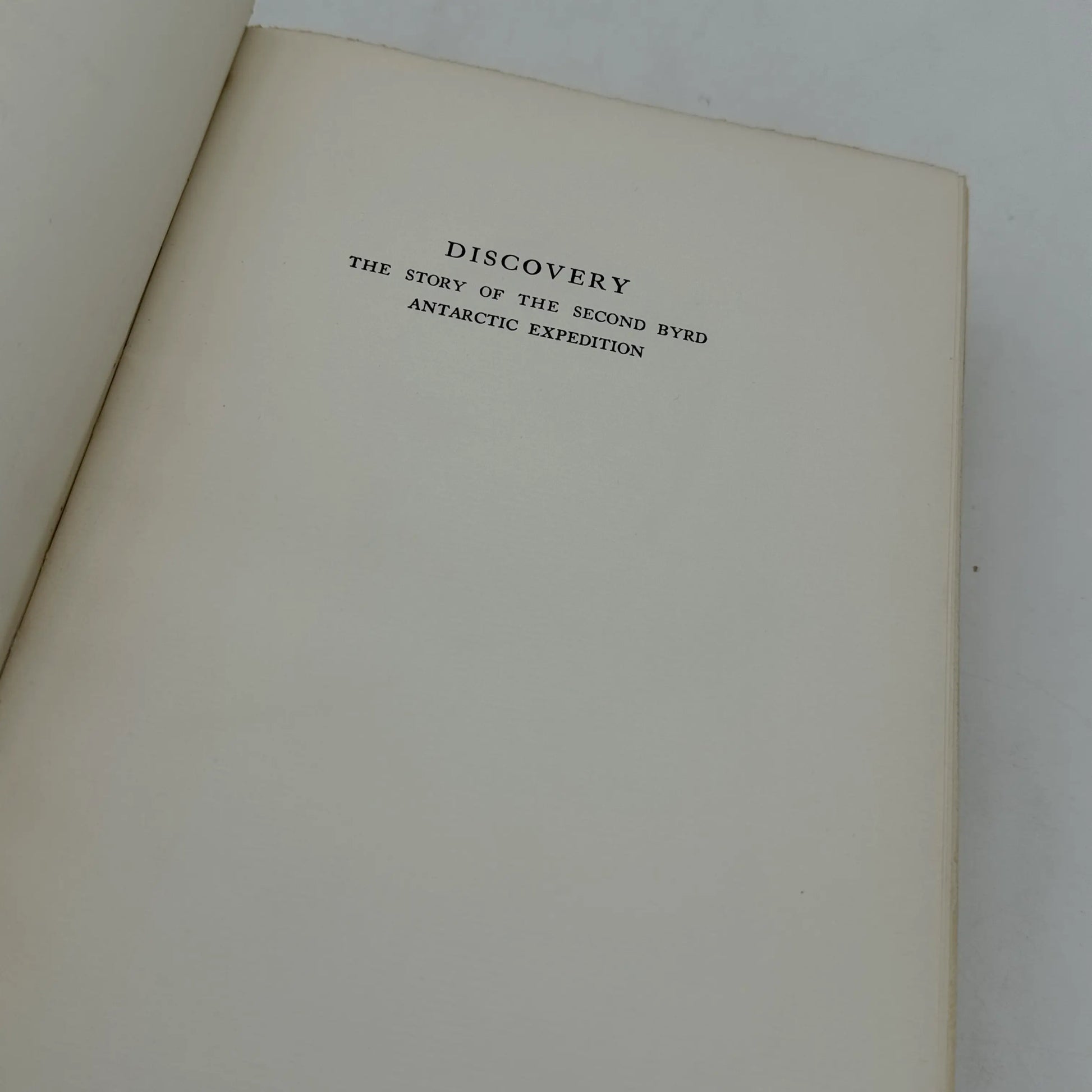 Full title: Discovery, The Story The Second Byrd Antarctic Expedition by Richard Evelyn Byrd, Rear Admiral, U. S. N., Ret. With an Introduction by Claude A. Swanson, Secretary of the Navy. Published in New York by G.P. Putnam's Sons in 1935. 405pp.