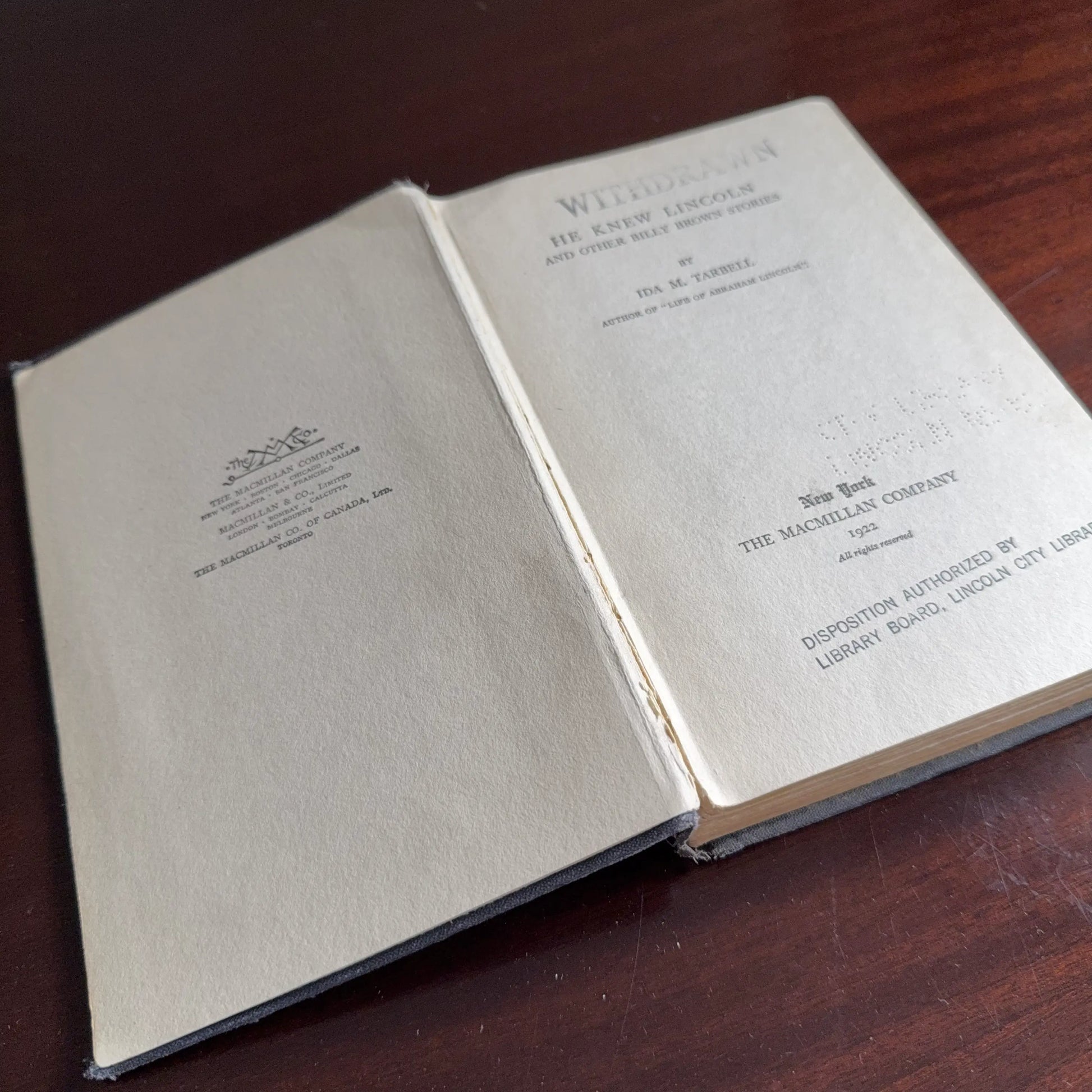 Full title: He Knew Lincoln and Other Billy Brown Stories. By Ida Tarbell. Published in New York by the MacMillan Company in 1922. 180pp.