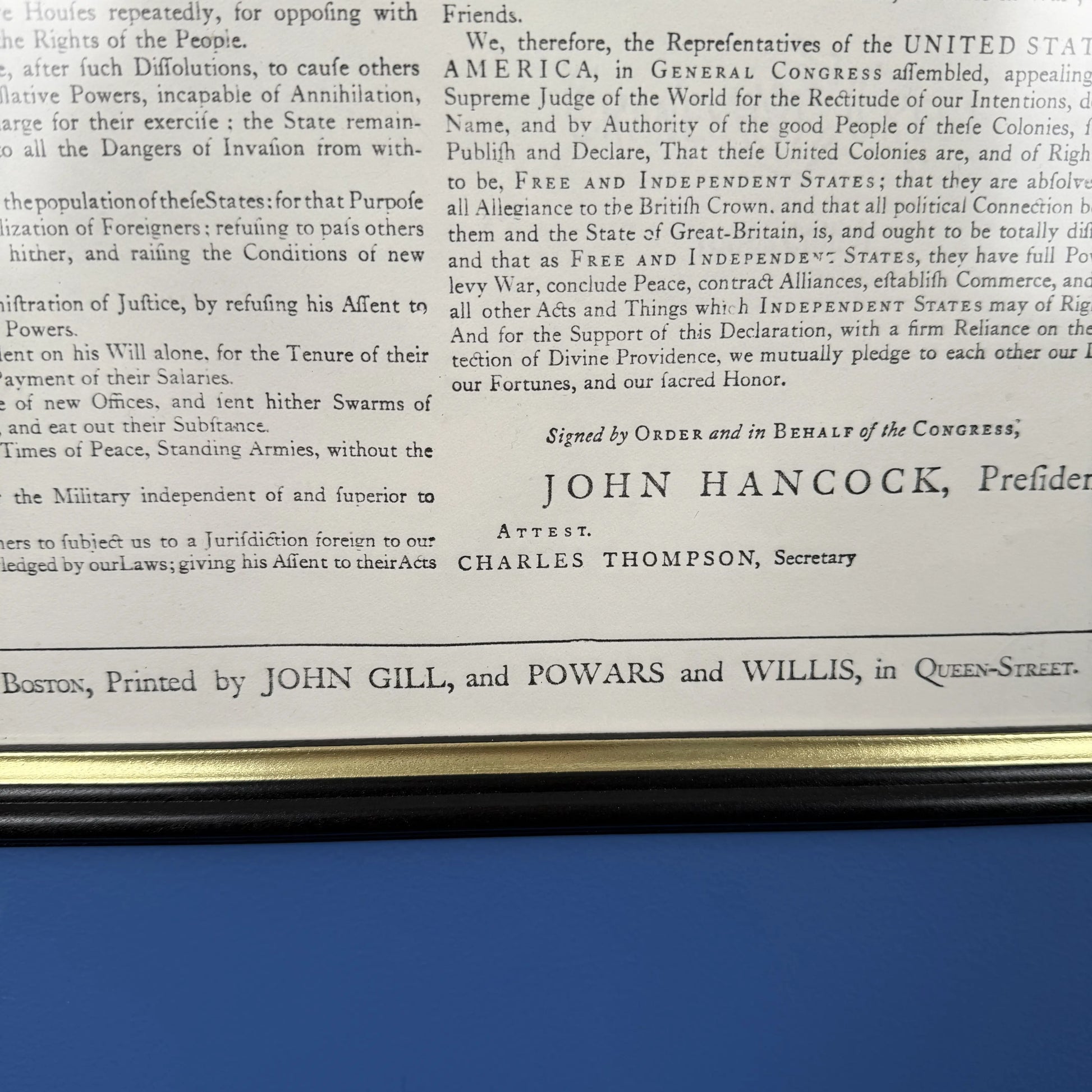 Framed "Declaration of Independence" Boston Broadside from the Printing Office of Edes & Gill in Boston