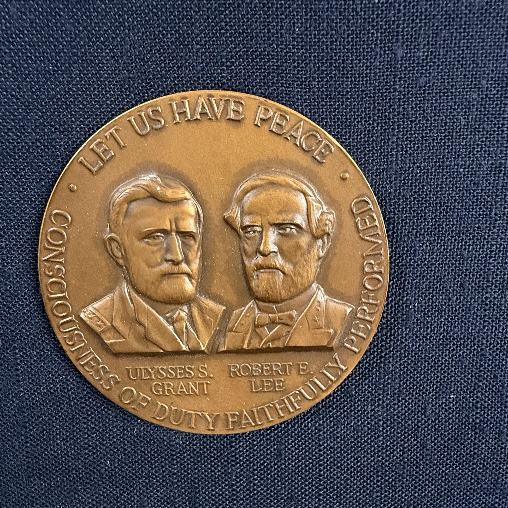 It was decided in the early discussions that the medals should bear portraits of the two great Civil War leaders, Generals Grant and Lee. The quotation, “Let Us Have Peace,” is taken from a letter written by General Grant in May of 1868 in which he accepts the Republican nomination for President of the United States. The quotation of General Lee’s, “Consciousness of Duty Faithfully Performed,” is taken from General Orders, #9, Headquarters, Army of Northern Virginia, April 10, 1865, which were considered to be General Lee’s farewell message to his troops. The quotation in its entirety reads, “You will take with you the satisfaction that proceeds from the consciousness of duty faithfully performed; and I will pray a merciful God will extend to you His blessings and protection.”