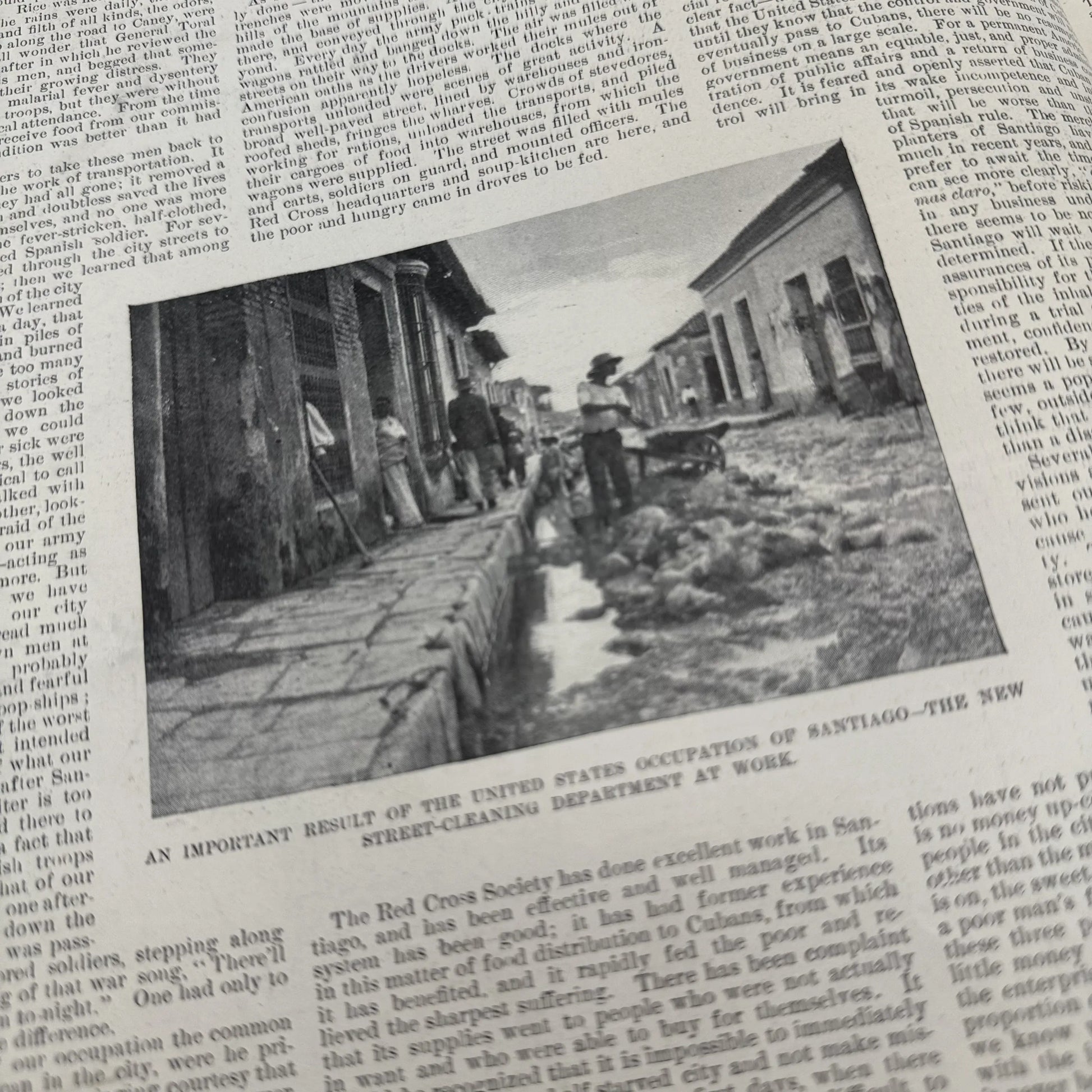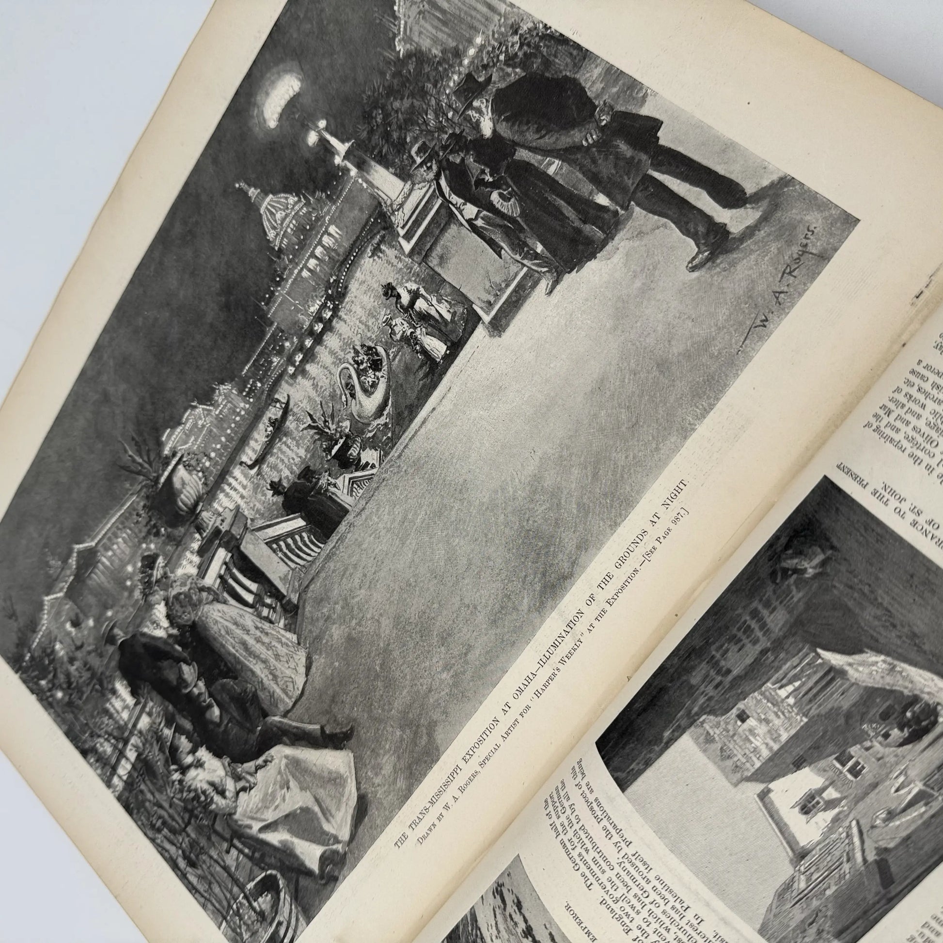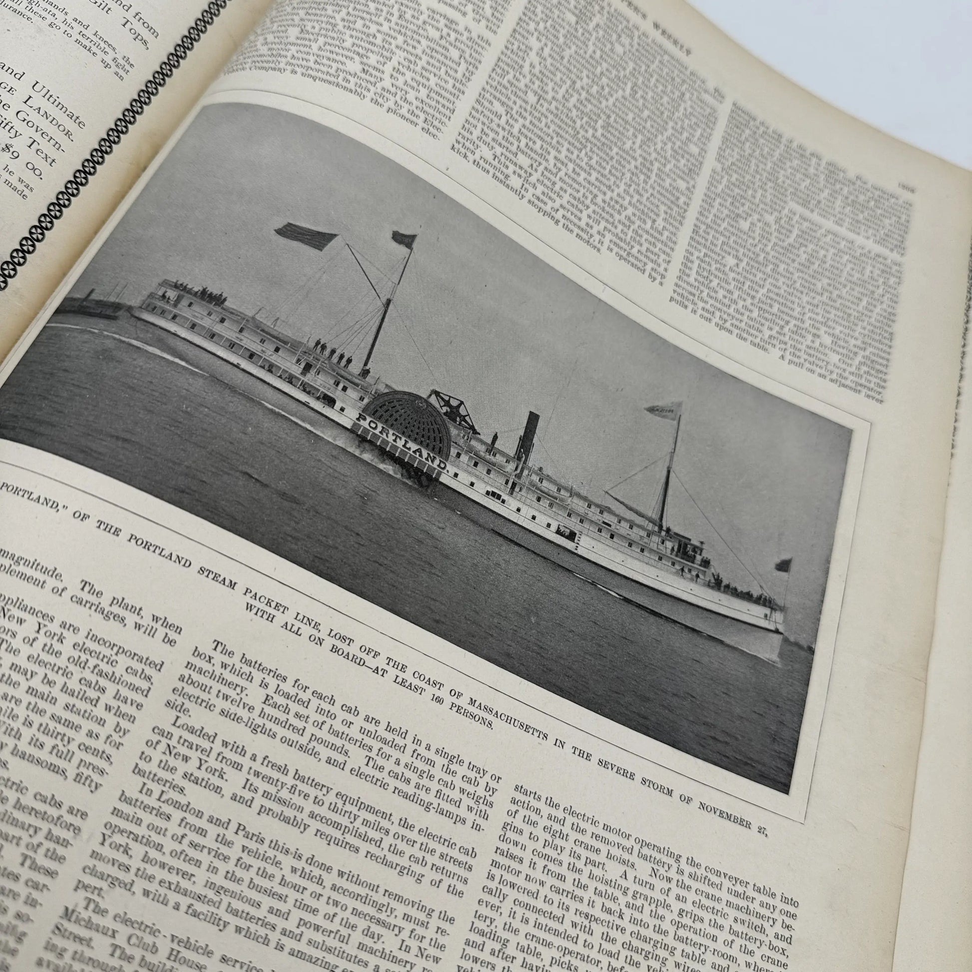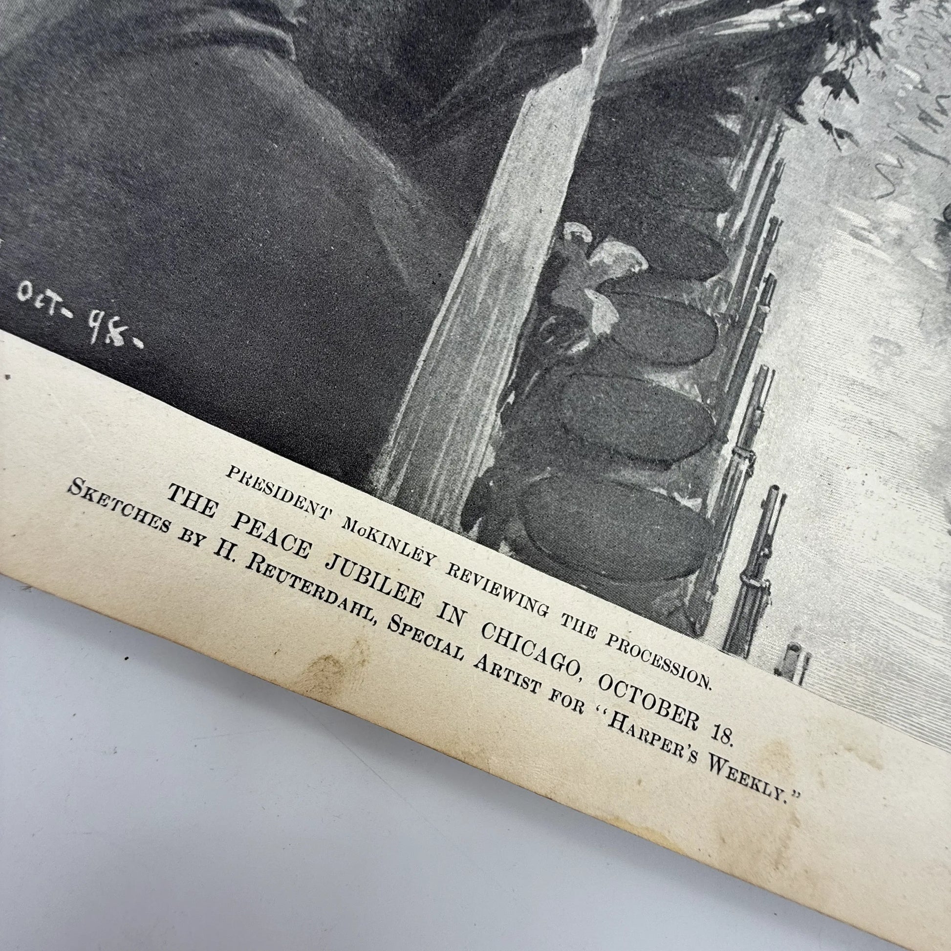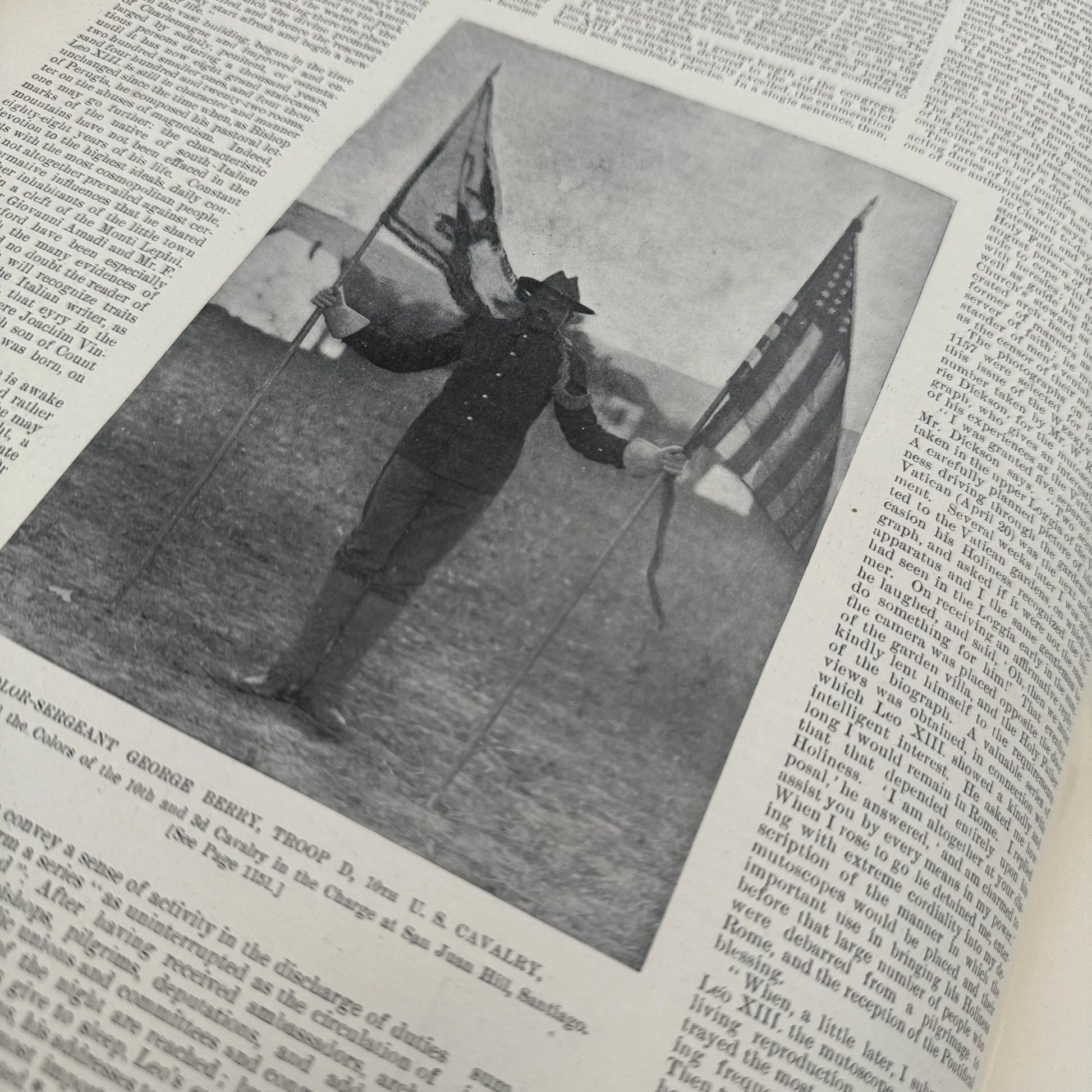 This 1898 first edition of Harpers Weekly includes all of the issues of the magazine from September through December in a large bound volume.