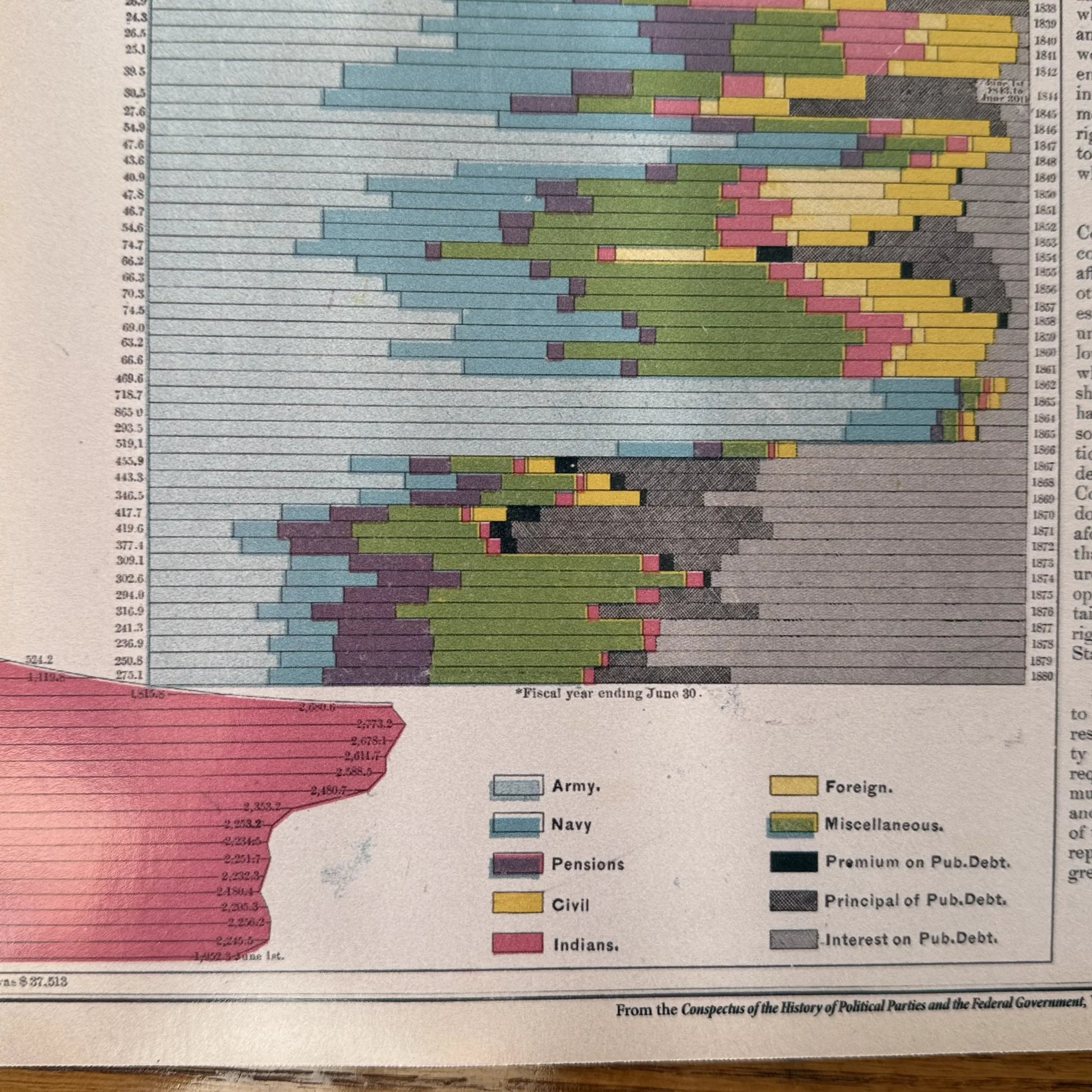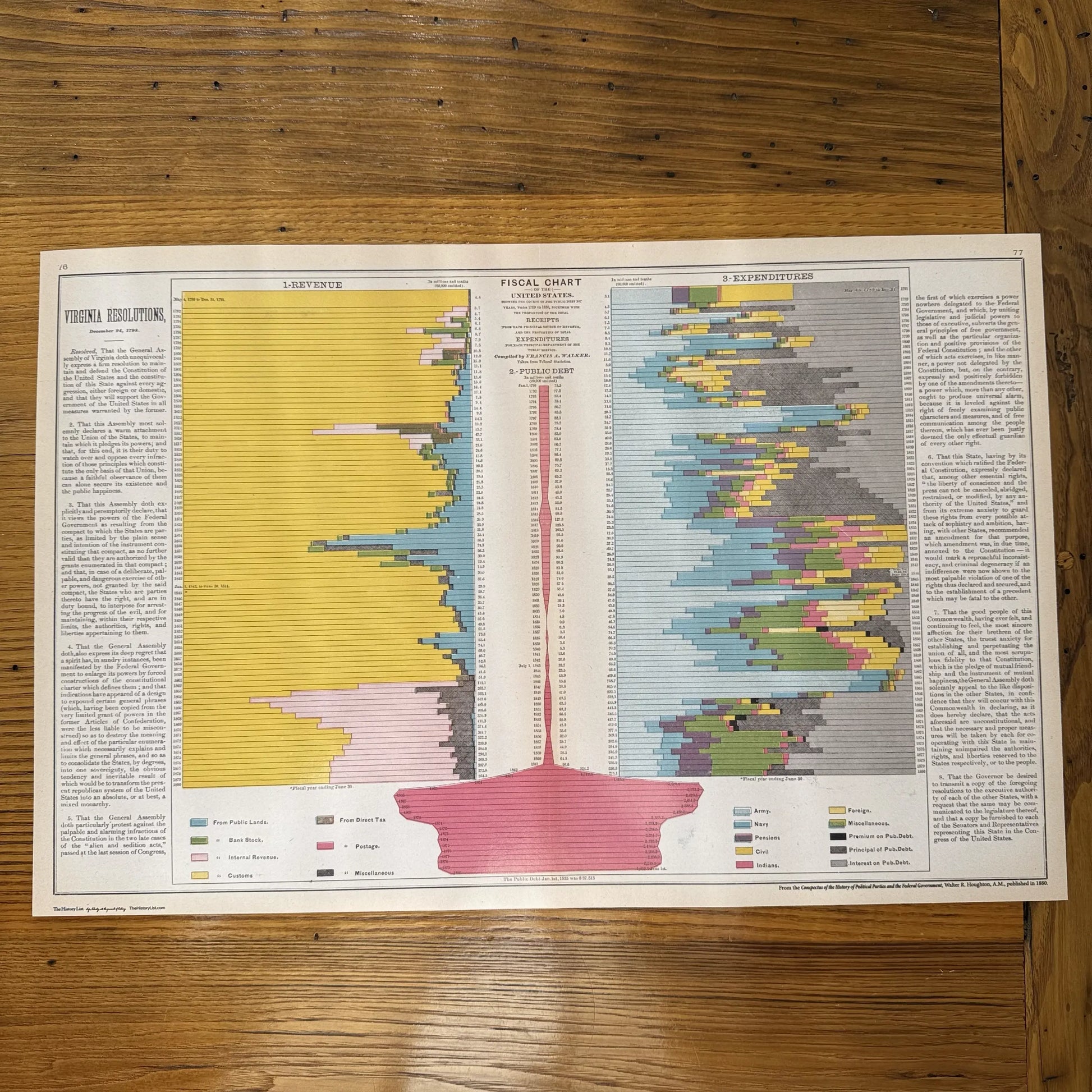 This is from the same book as the famous chart, "The Rise and Fall of American Political Parties and Administrations from 1789 to 1880" chart, which we offer reproduced at its original size of 12 3/4" x 55 1/8" (each of two prints, which make up the entire chart).