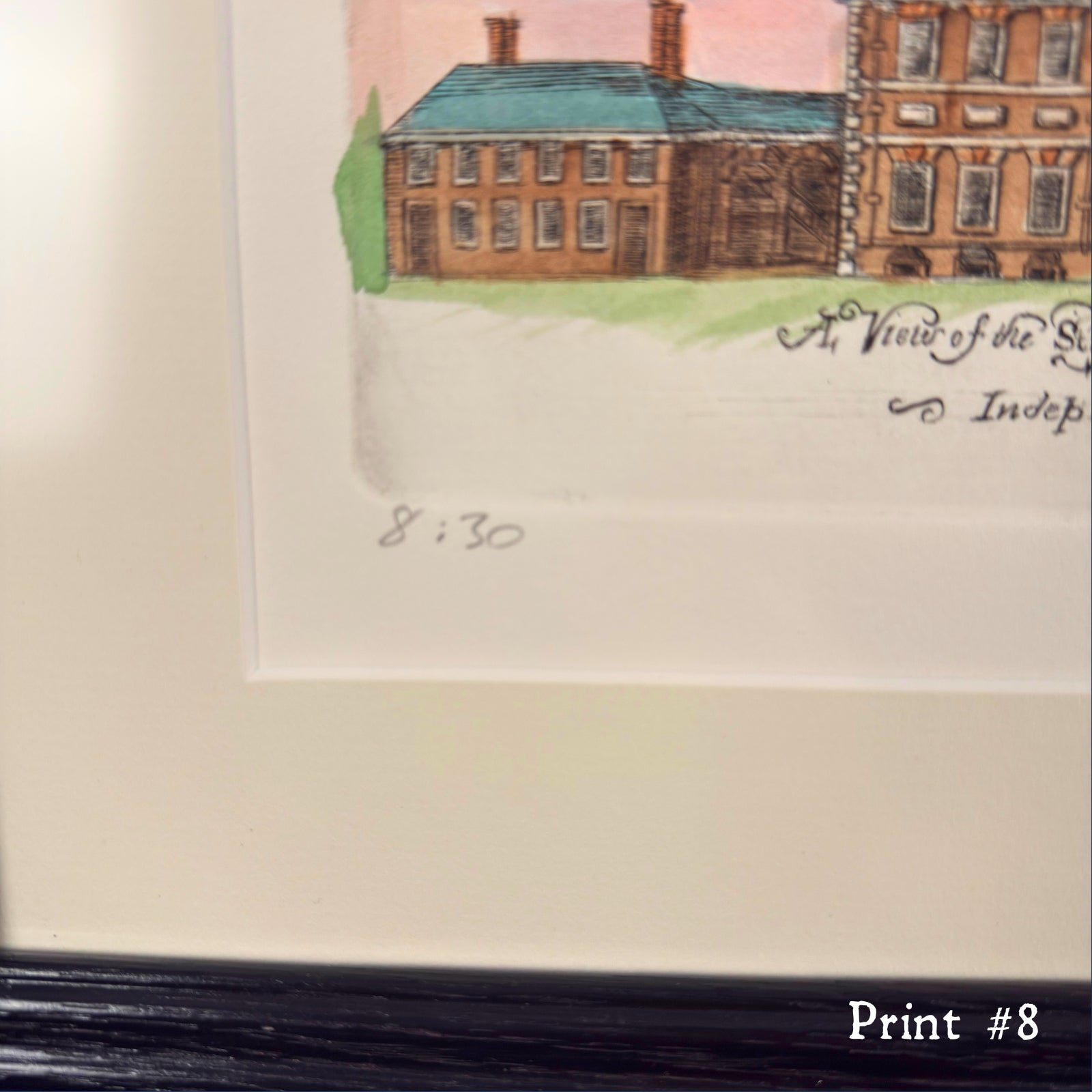"A View of the State House in Philadelphia" Hand-Engraved and hand watercolored framed print