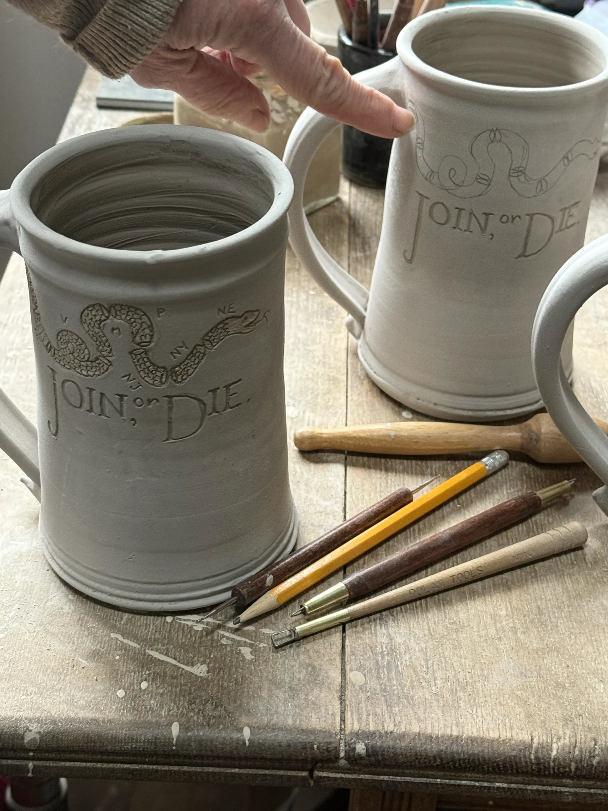 "Join or Die" Tavern Mug — Traditional redware made by hand in America