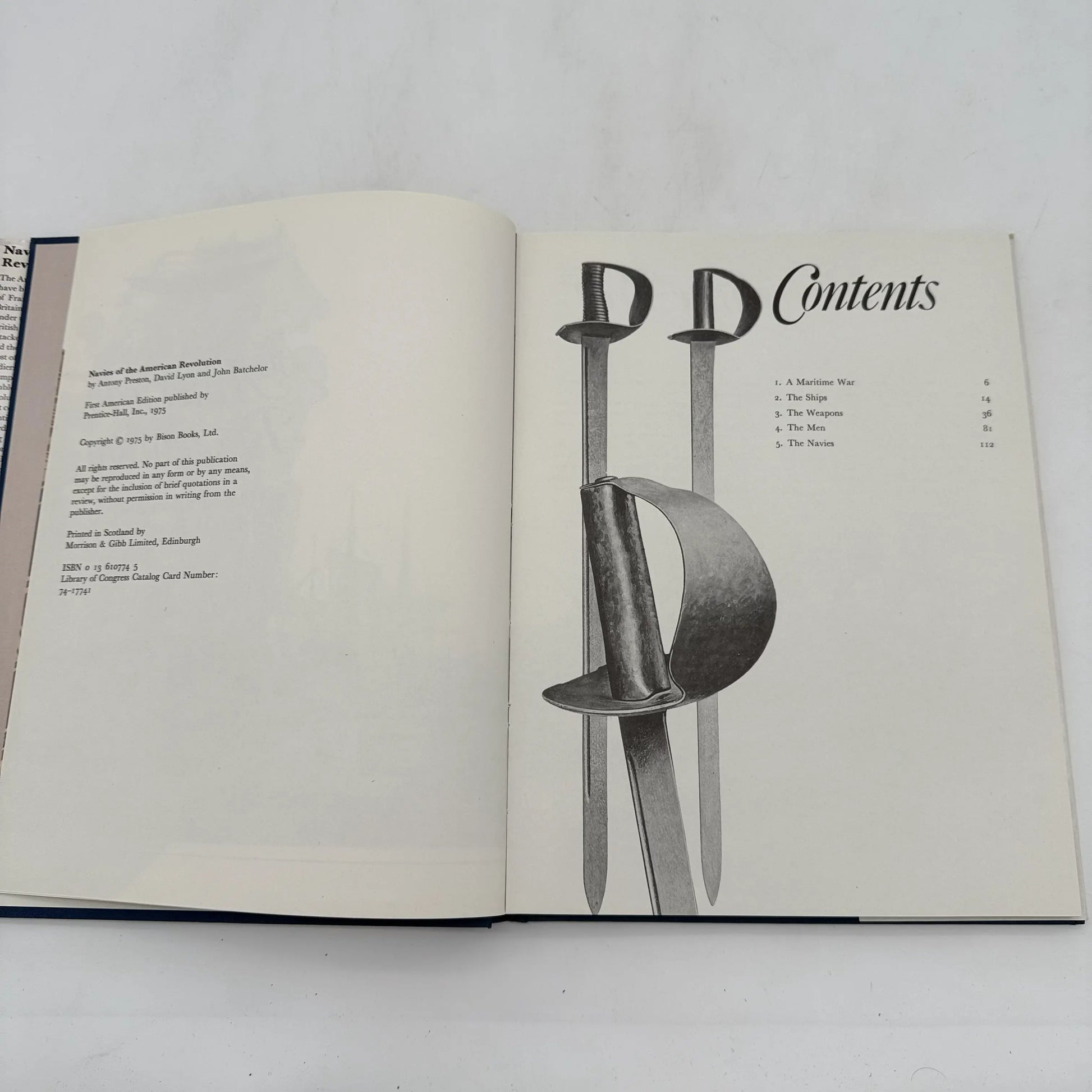 Full title: Navies of the American Revolution by Antony Preston, David Lyon, and John H. Batchelor. Published in Englewood Cliffs, New Jersey by Prentice-Hall, Inc. in 1975. 158pp with several illustrations.