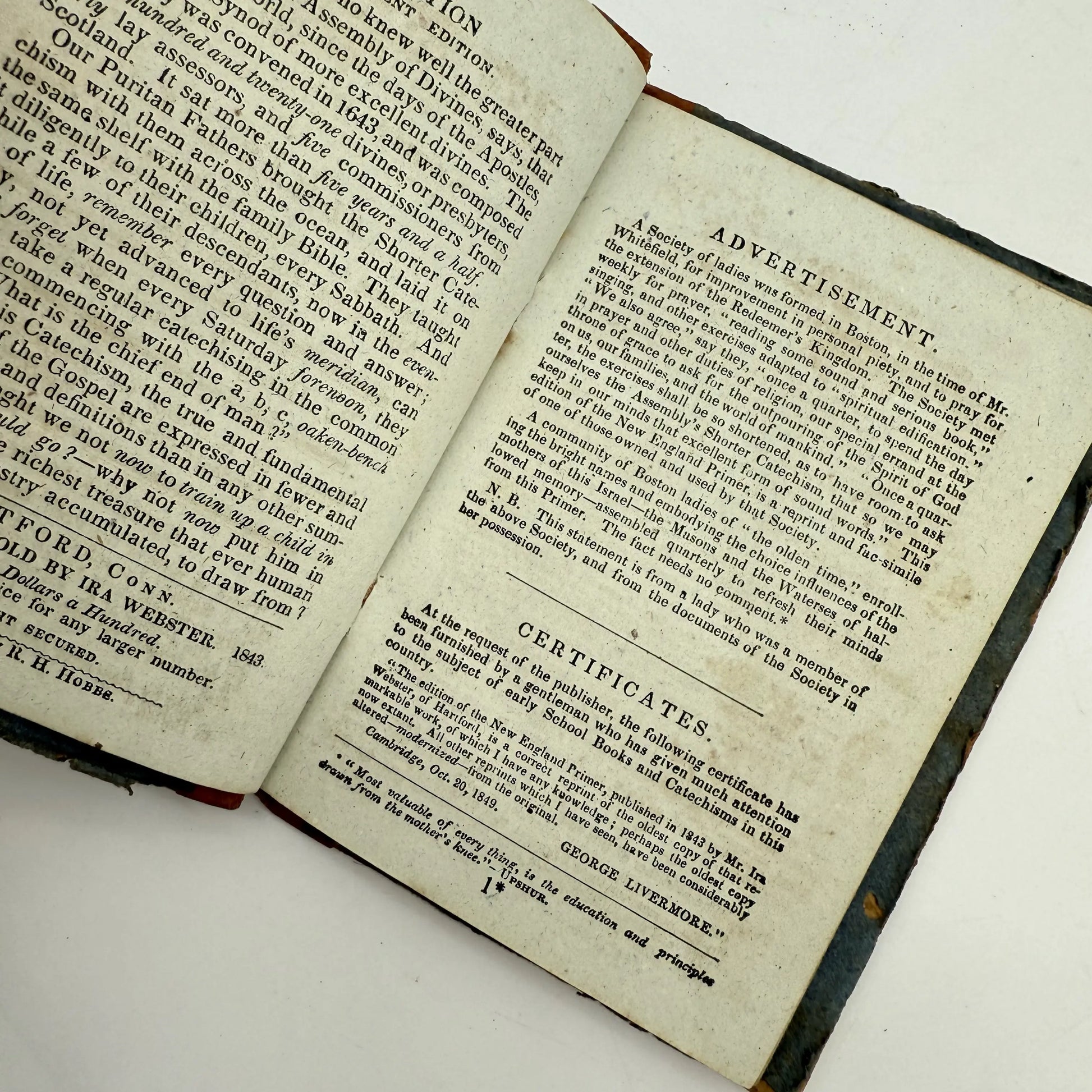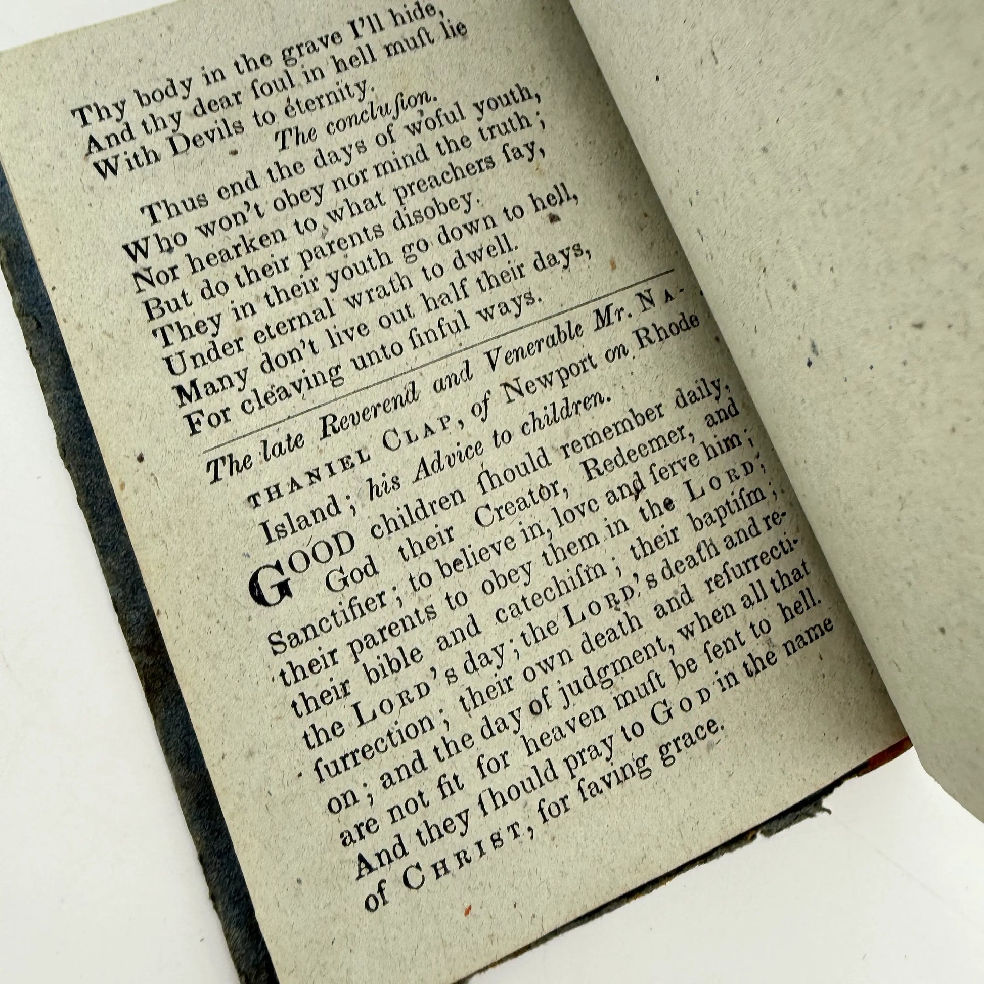Full title: The New England Primer Improved. For the more easy attaining the true reading of English, to which is added The Assembly of Divines, and Mr. Cotton's Catechism. By Westminster Assembly. Published in Boston by Edward Draper at his Printing-Office, in Newbury Street. Sold by John Boyle in Marlborough Street. 1777.