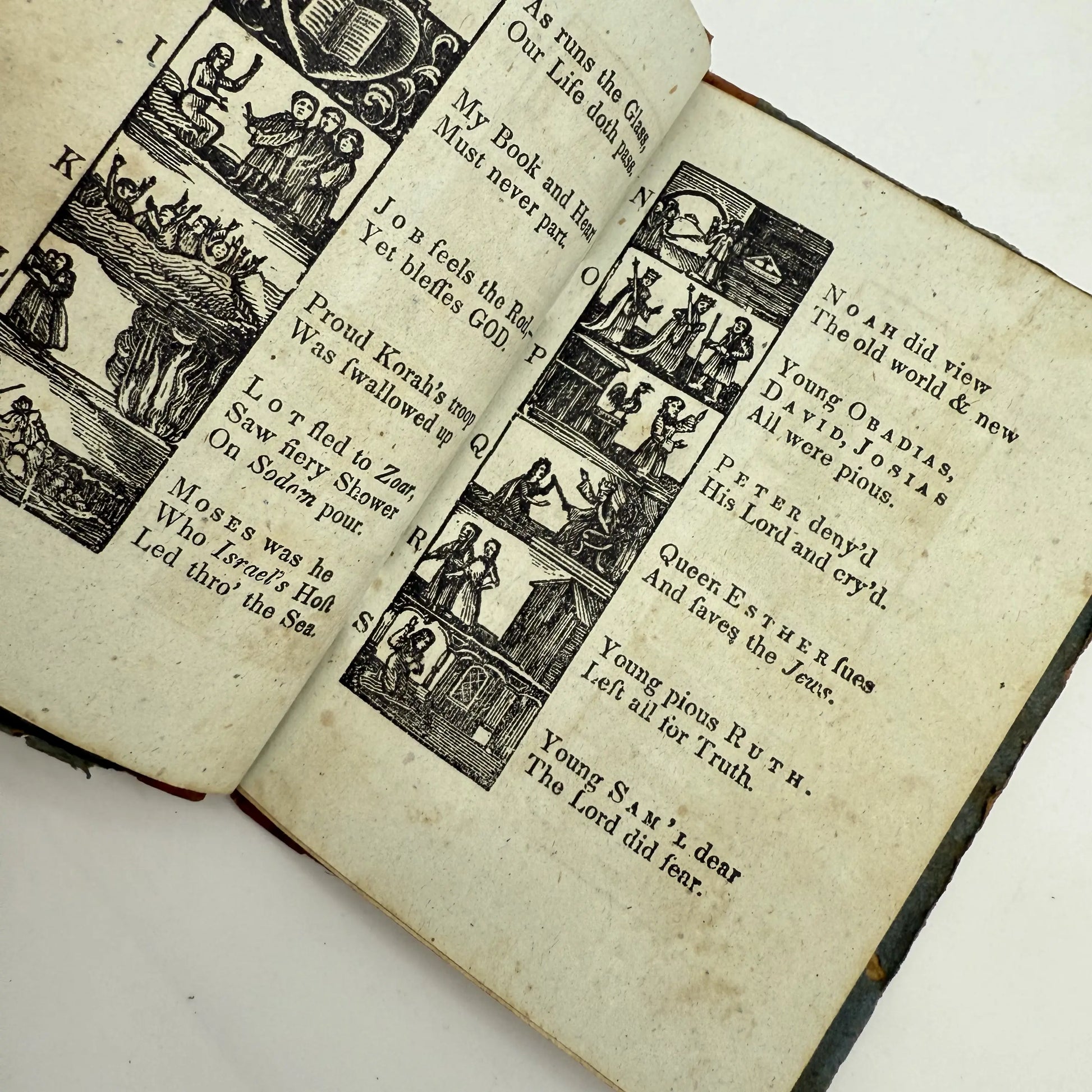 "The New England Primer was the first reading primer designed in the American colonies. It is considered one of the most successful textbooks of the 18th century and continued with improved editions into the 19th century. Alphabet verses teaching morality lessons concerning good and evil comprise much of the book. Many of the teachings can be found from the King James Bible as well as Puritan ideals. Secular alphabet passages came later. The New England Primer also contained a catechism with questions and answers about faith and prayers."