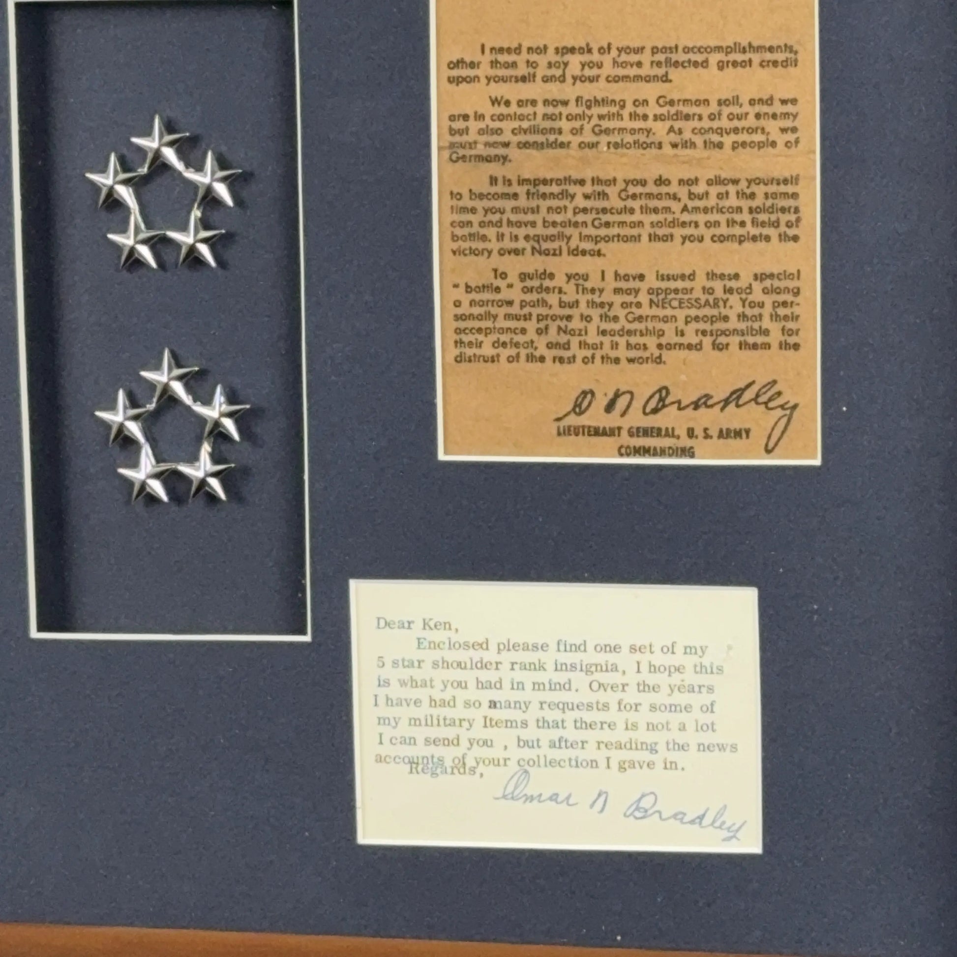 General Omar Bradley Collection — Signed photo, pair of his five star pins