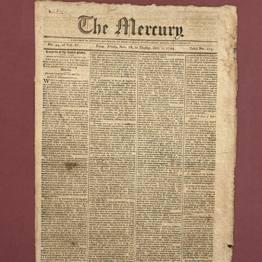 December 31, 1775 issue of the Pennsylvania Evening Post, Volume 1, Number 121, with one of the earliest references to "minute men."
