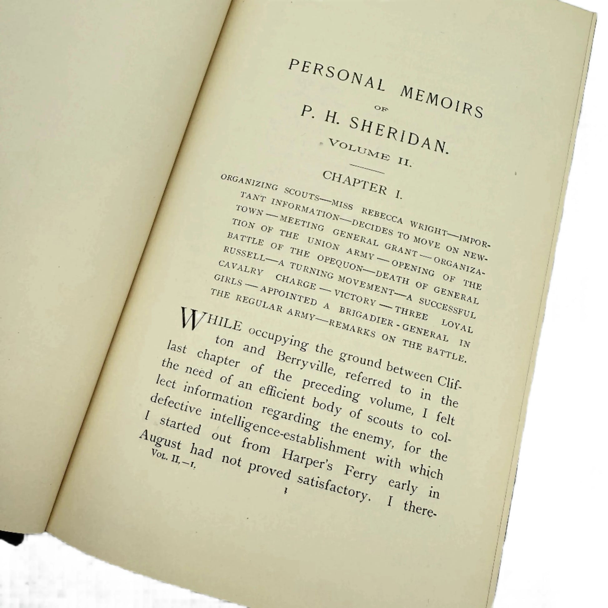 Full title: Personal Memoirs of R.H. Sheridan. General United States Army in two volumes. Published in New York by Charles L. Webster & Company in 1888.
