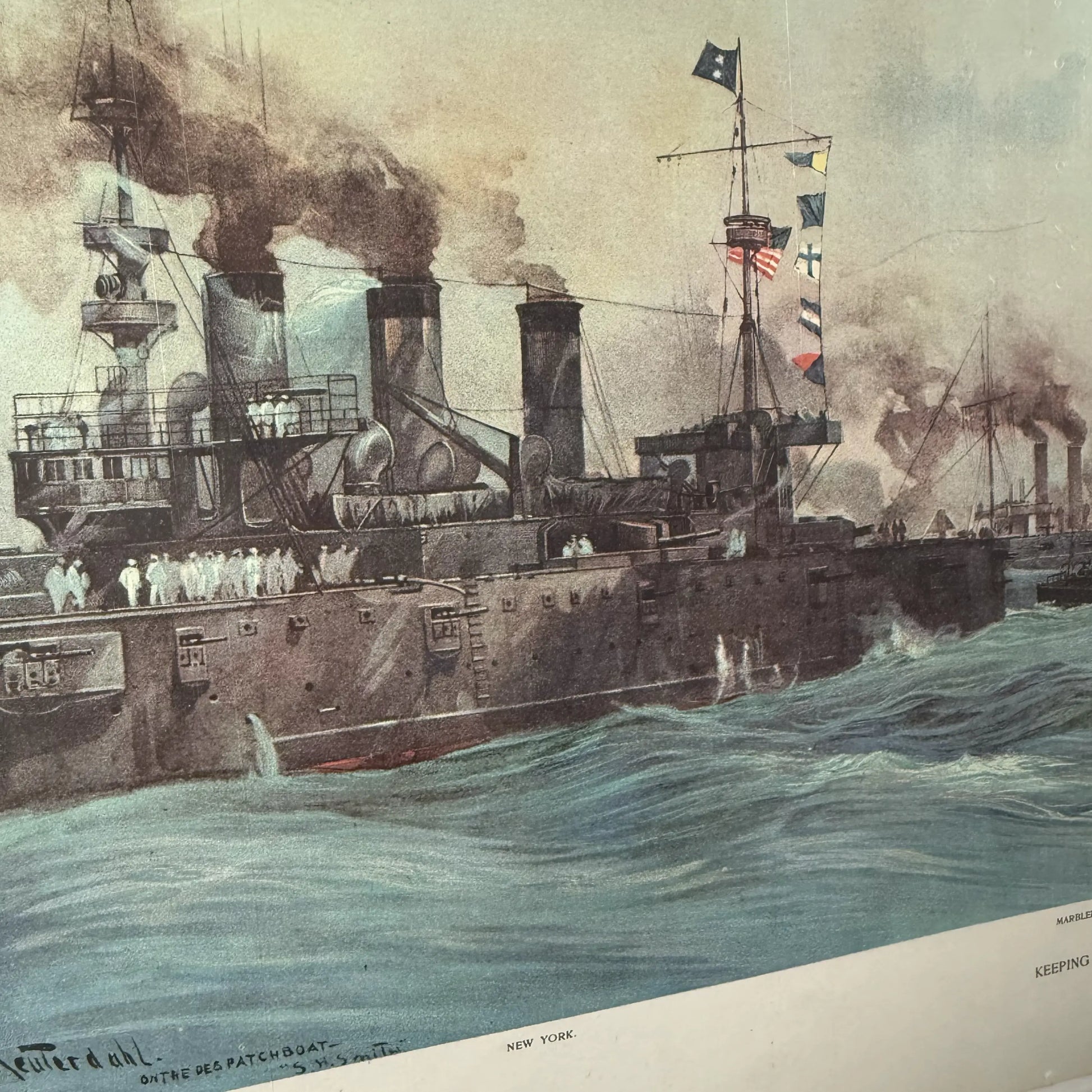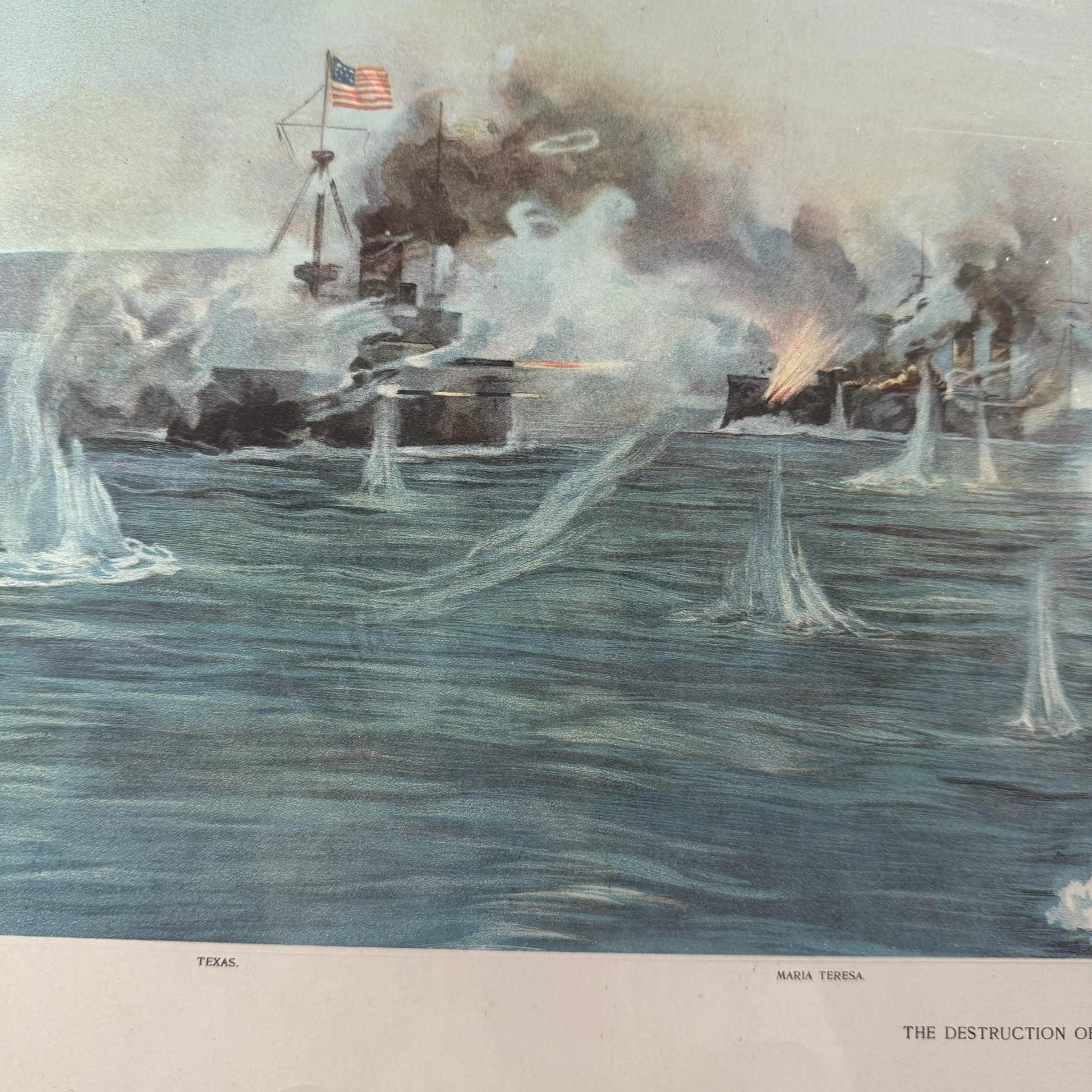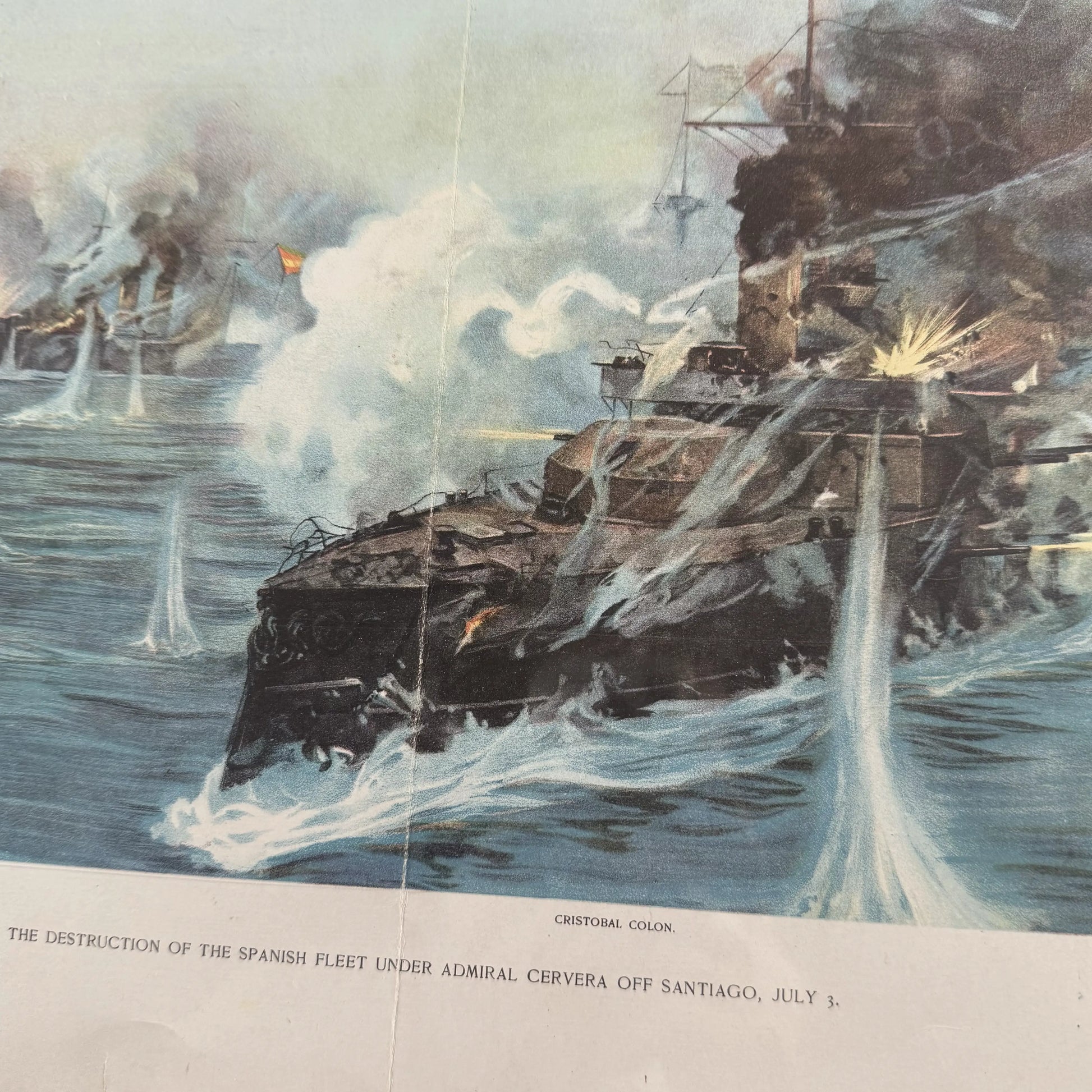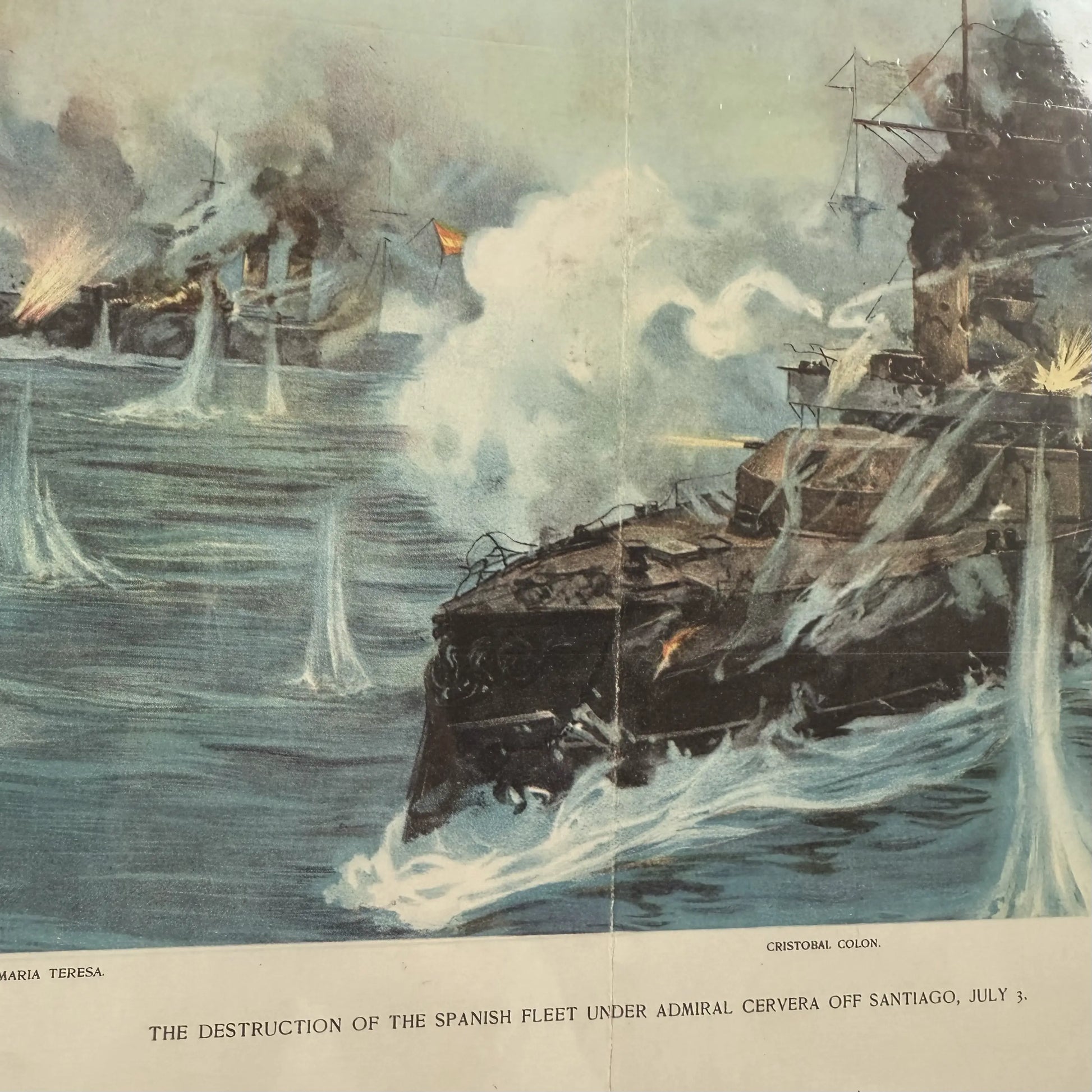 Dramatic Spanish-American War Naval Prints painted by Henry Reuterdahl. (See below for more information on the artist.)