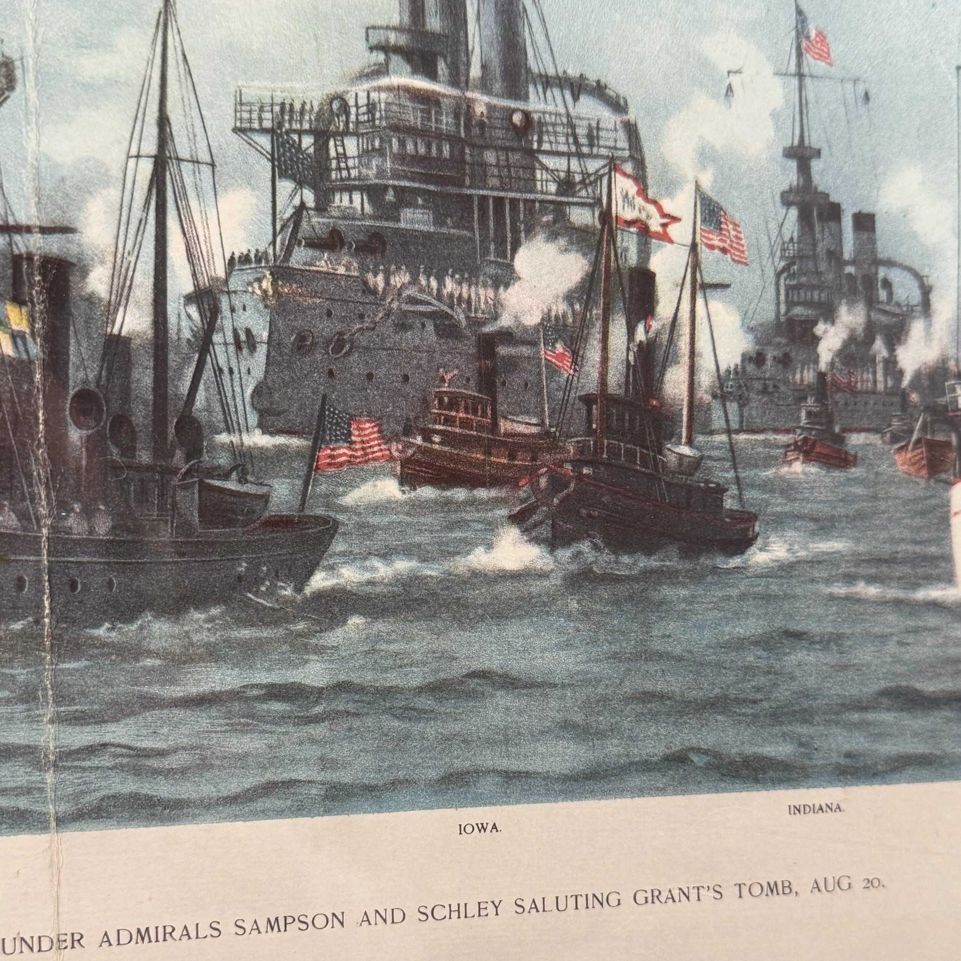 The Nation's Welcome to its Victorious Navy. The Fleet Under Admiral Sampson and Schley Saluting Grant's Tomb, Aug. 20—New York, Iowa, Indiana, Brooklyn, Oregon, Massachusetts, Texas