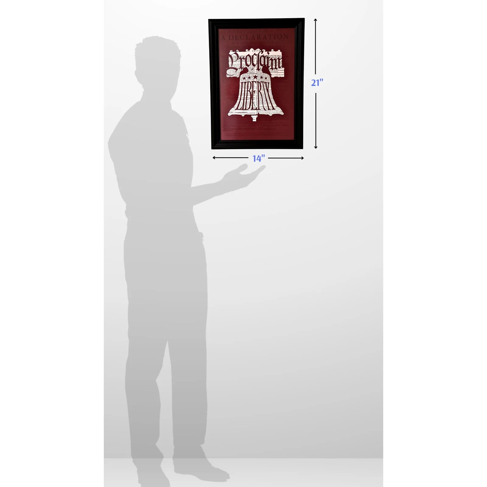 An original piece of art, made in America in every way. The Liberty Bell and "Proclaim Liberty" silk screened on the Boston broadside of the Declaration of Independence from the Printing Office of Edes and Gill in a frame Made in America. Designed, printed, silk screened, and framed here in New England.