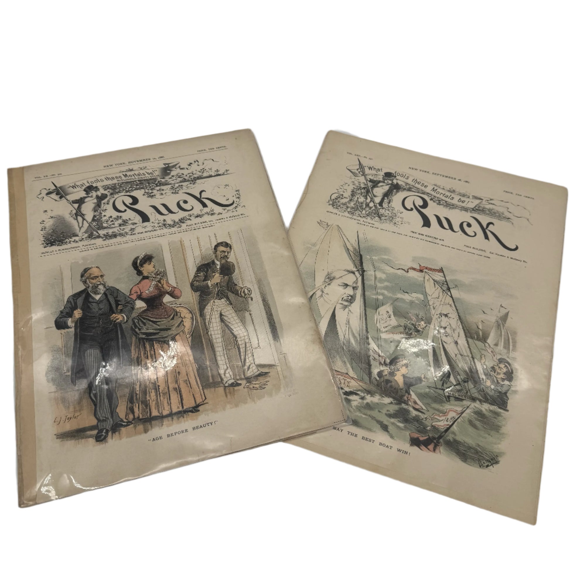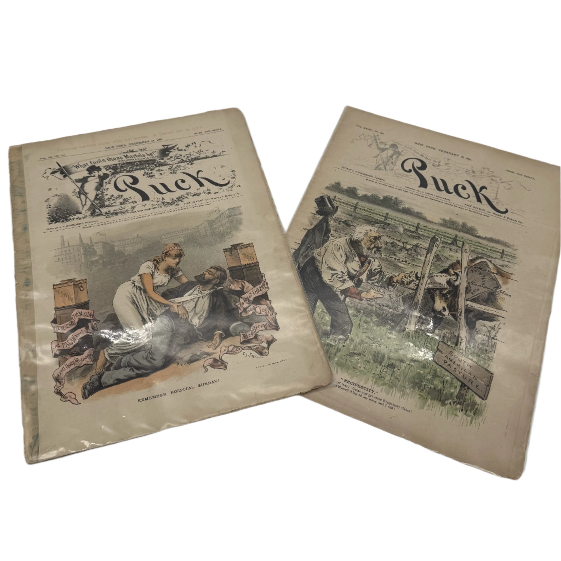 "Puck" and "Judge" Magazines — 1881 - 1905 — Fourteen issues with an optional archival box
