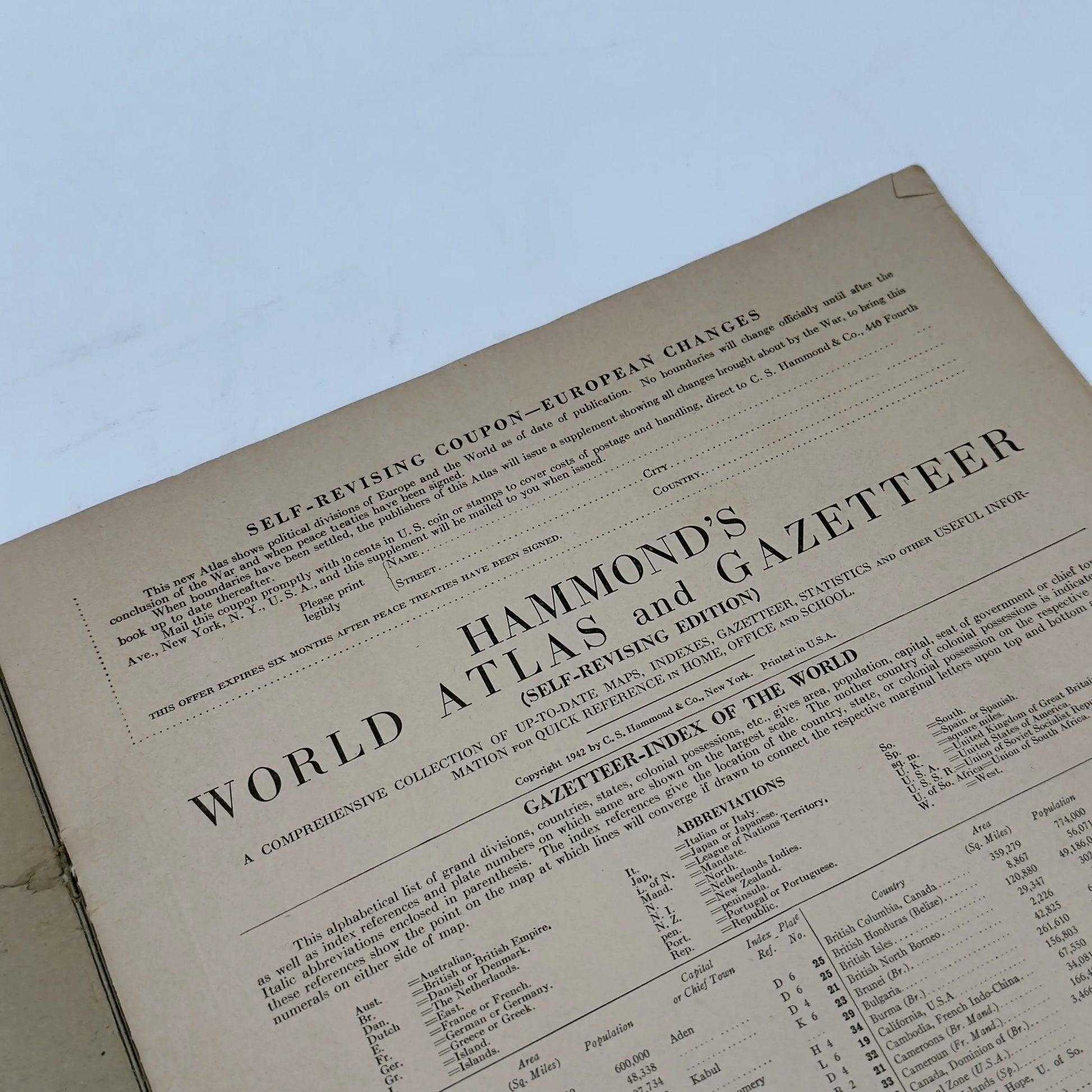 Anticipating the shifting borders that would result from the Second World War, Hammond included a coupon in the front of this volume promising a future supplement—maps showing “the new boundaries of all warring countries.” The coupon, still intact in this copy, was never redeemed, offering a fascinating glimpse into the uncertainty and foresight of the era.