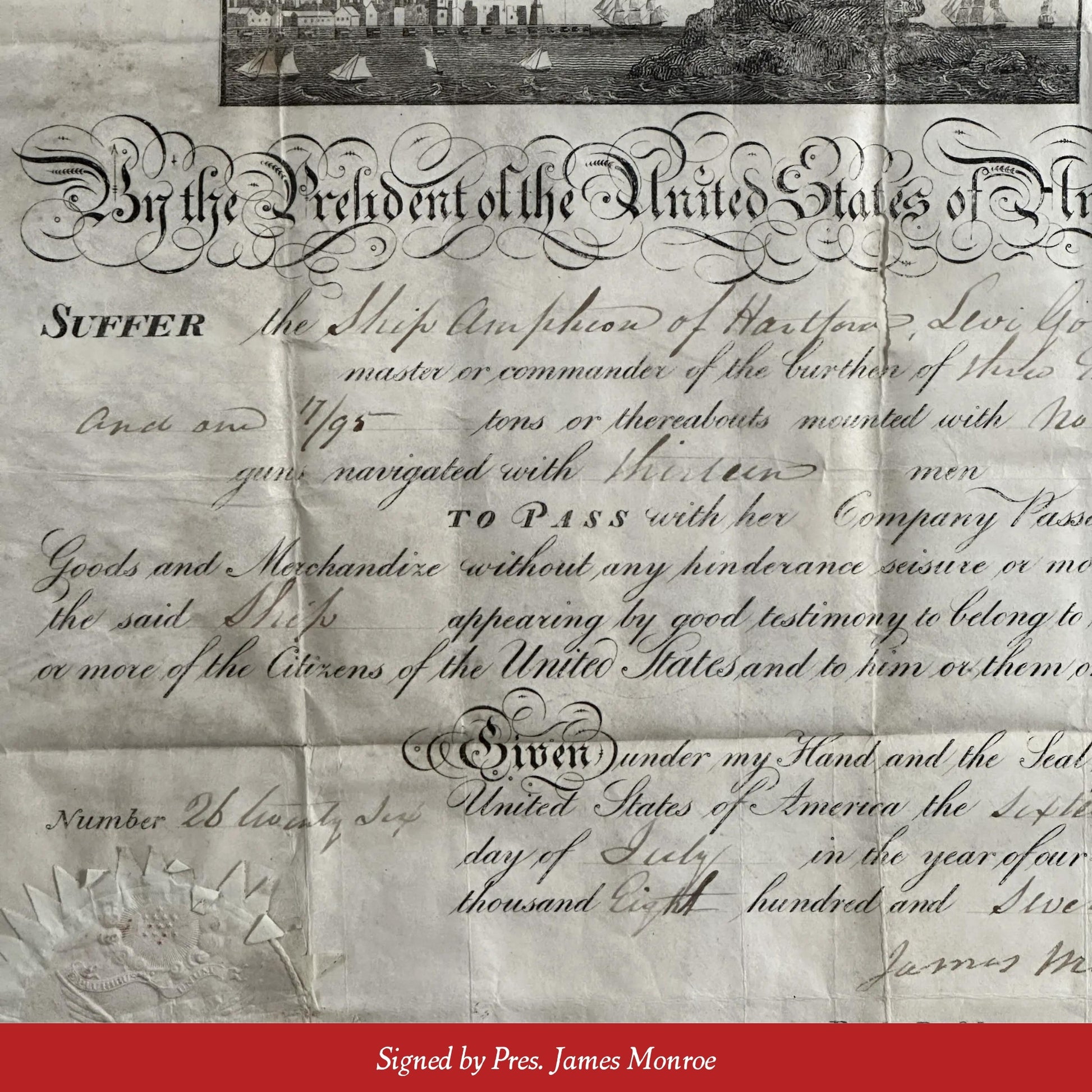 More information on the Ships' Passport signed by James Monroe — Sold