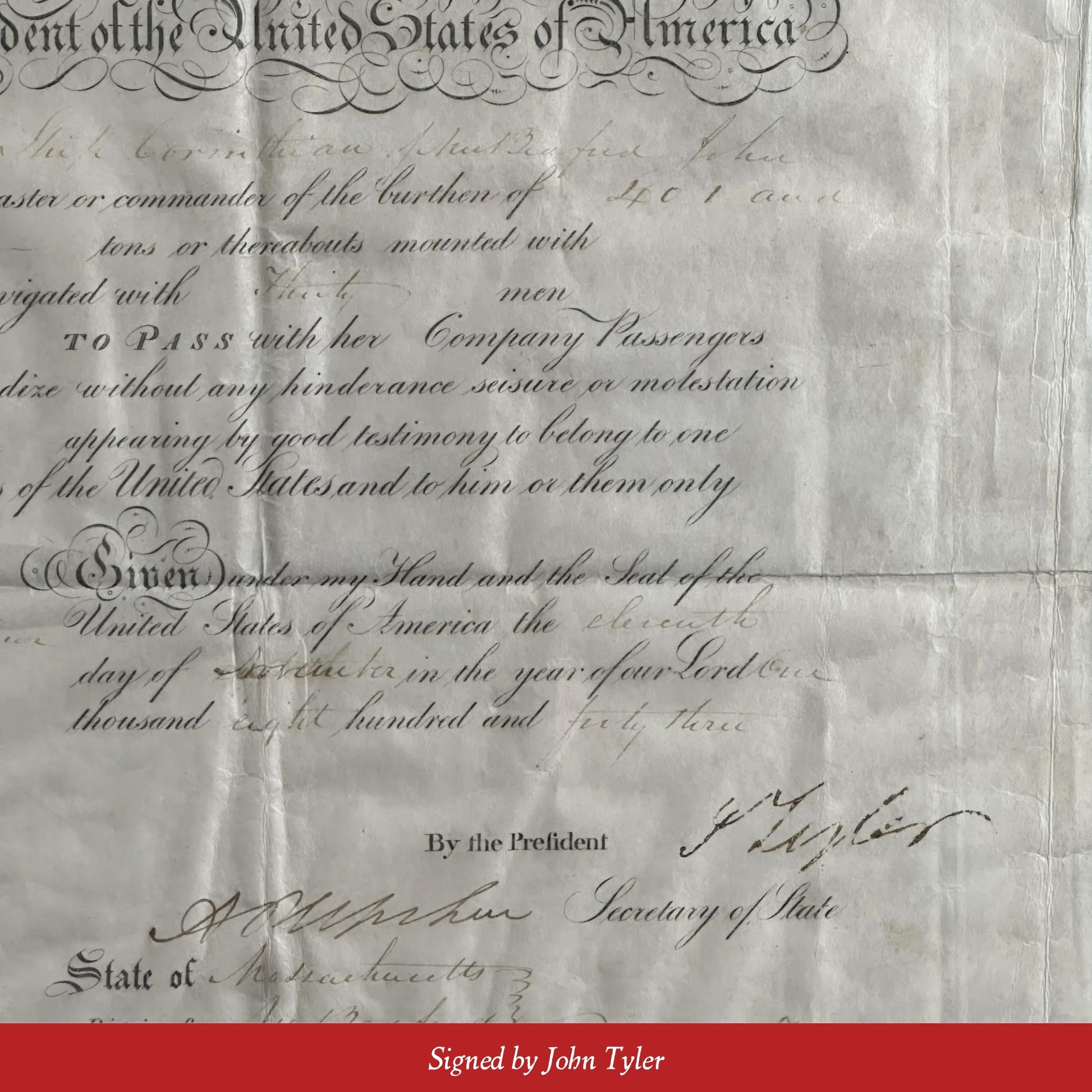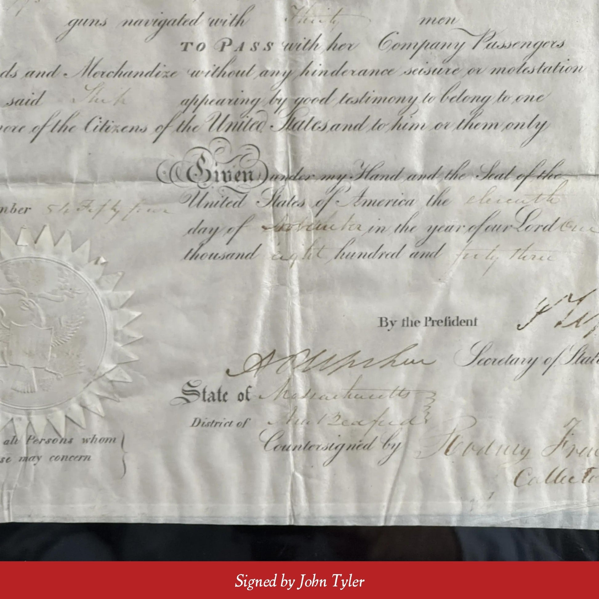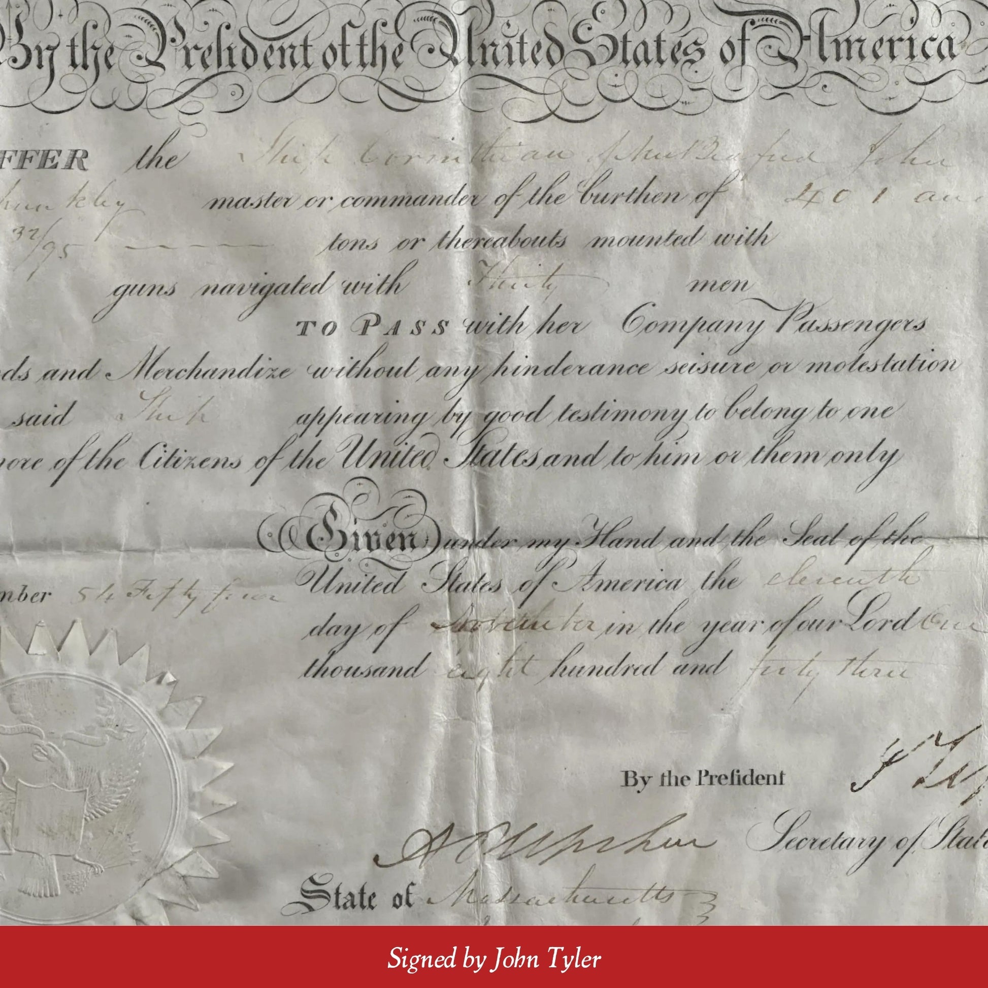 Ship's Passport signed by President John Tyler