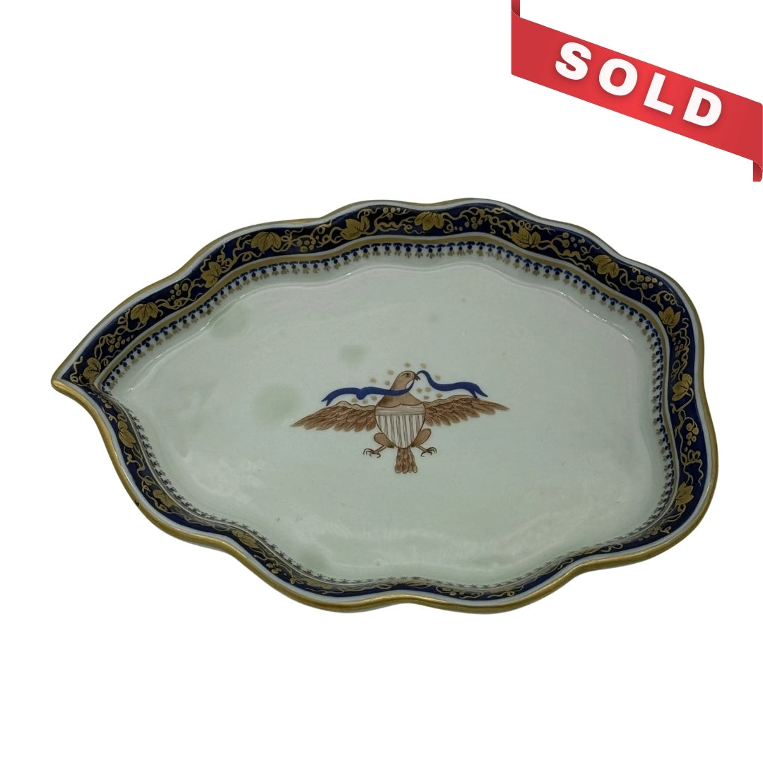 Early Mottahedeh piece with the Diplomatic Eagle in the middle. Blue and gold details at the border.
