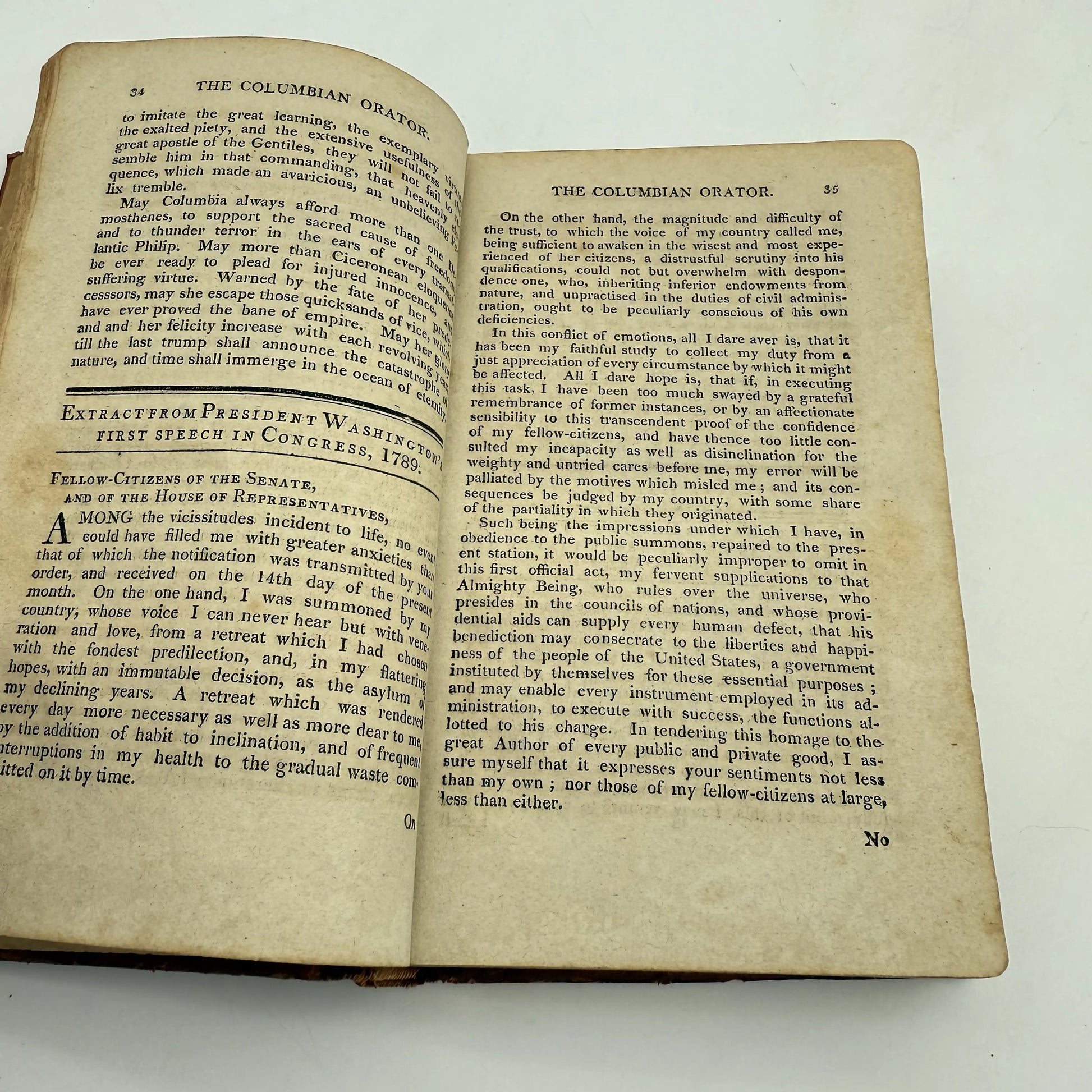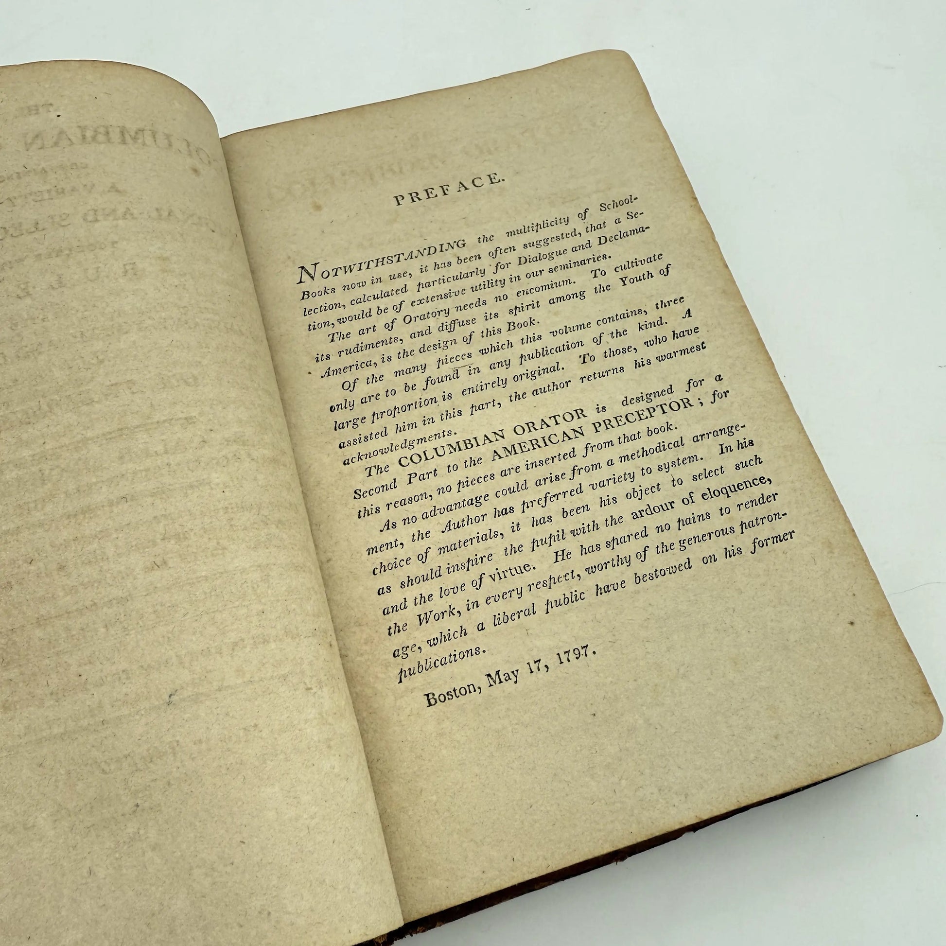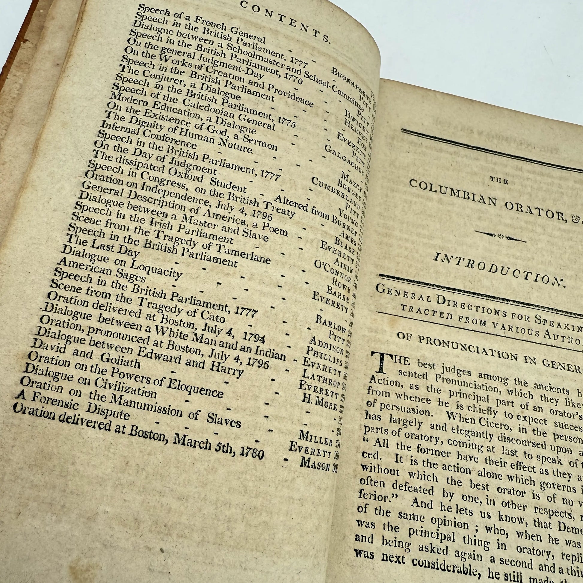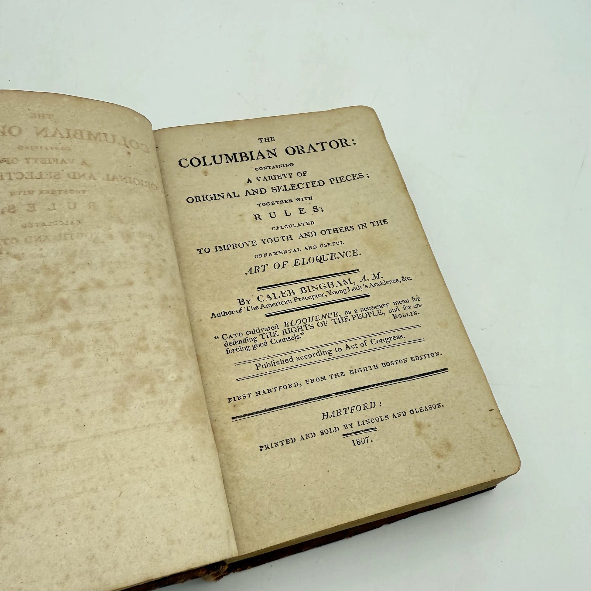 Full title: The Columbian orator : containing a variety of original and selected pieces, together with rules, calculated to improve youth and others in the ornamental and useful art of eloquence. By Caleb Bingham, A.M. Published in Hartford by Lincoln and Gleason in 1807.