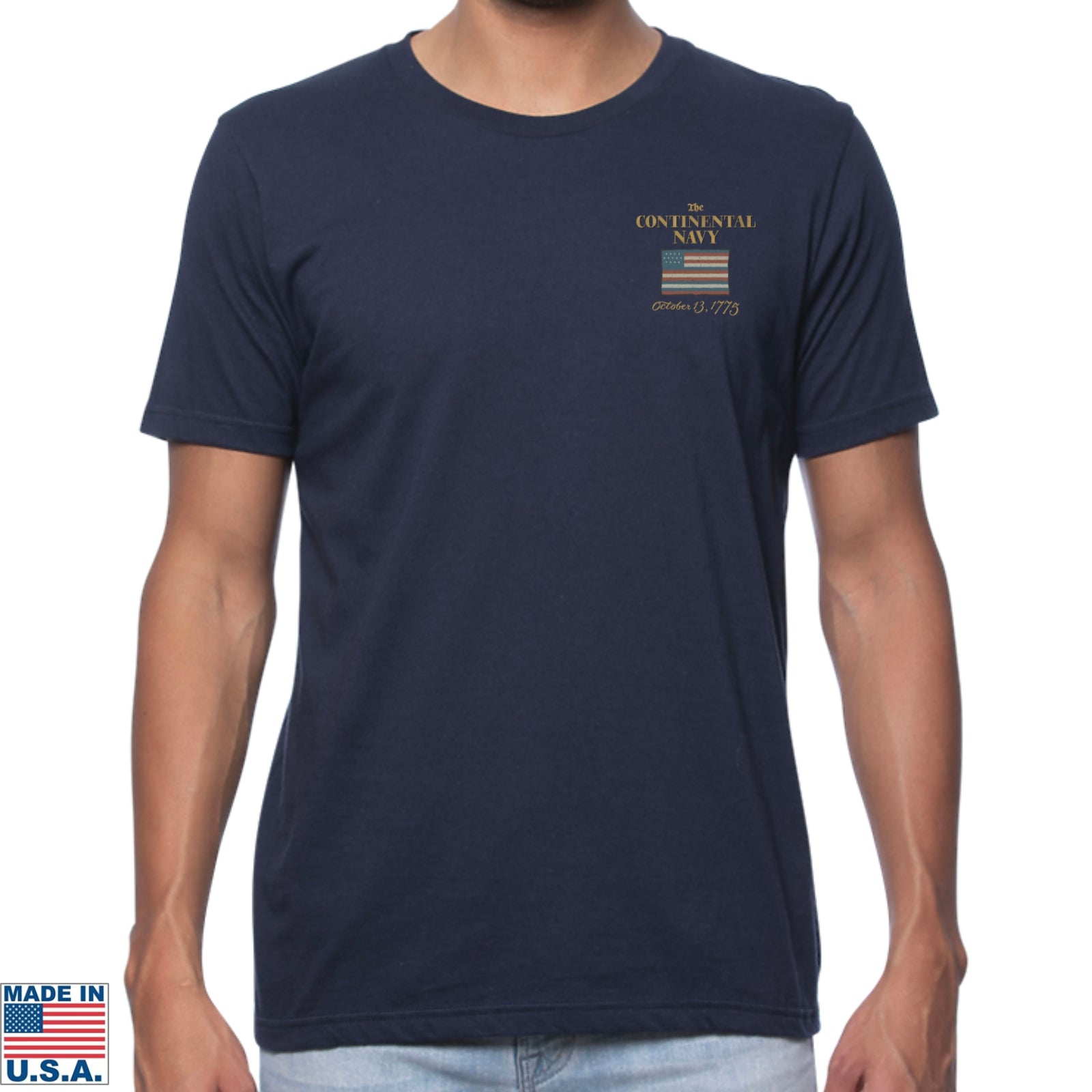Important shipping information for Continental Navy shirts for Christmas: This is an advance order. We have sold almost all of our Continental Navy shirts of all styles and sizes and are going to print more. As of this evening (December 12), we expect to ship these on Friday, December 19. While we can’t guarantee delivery, your best choice for getting your package by Christmas is UPS 3-Day shipping ($11.95), which you can select at checkout. If you have ordered other things going to the same address, we will hold them and ship them with your Continental Navy shirt.