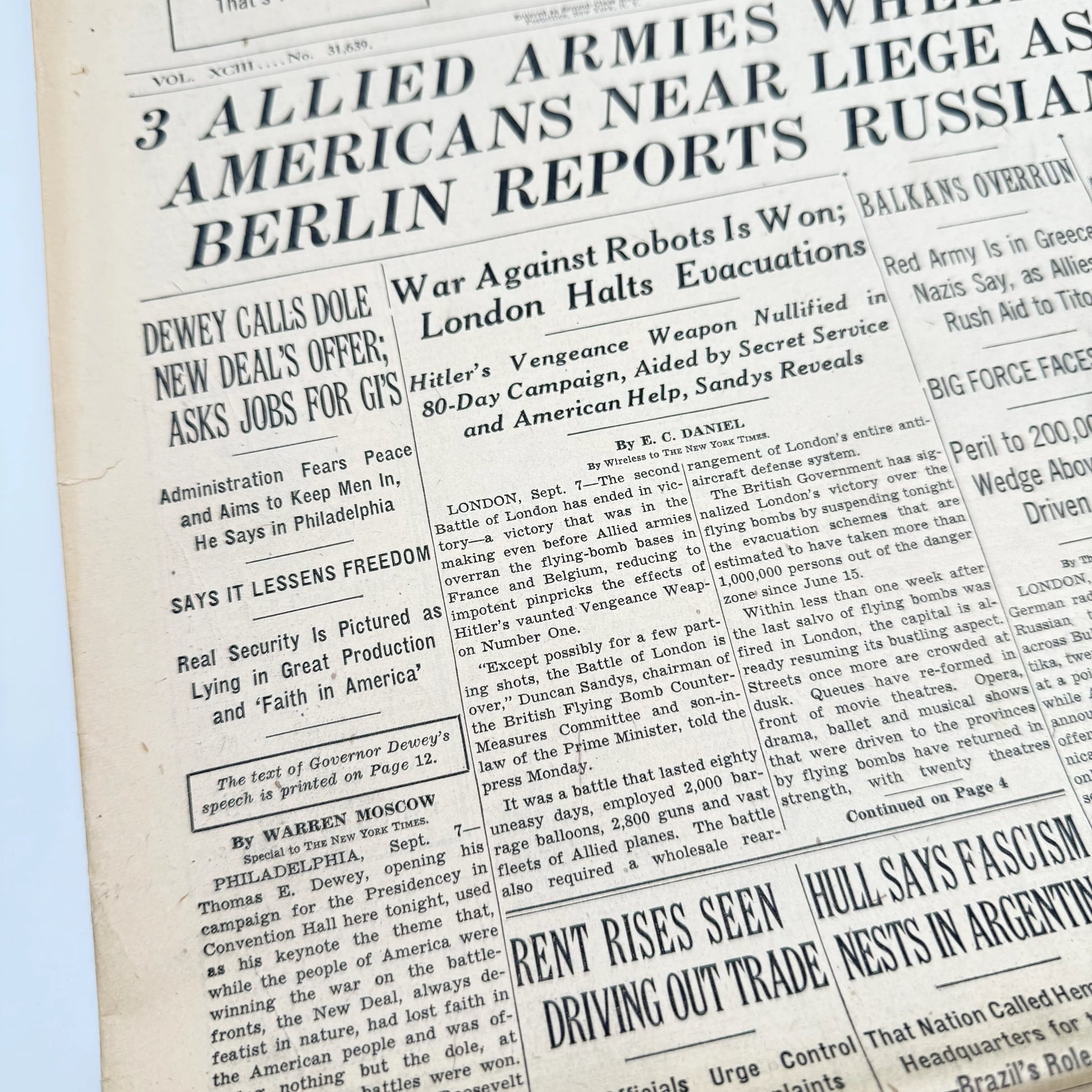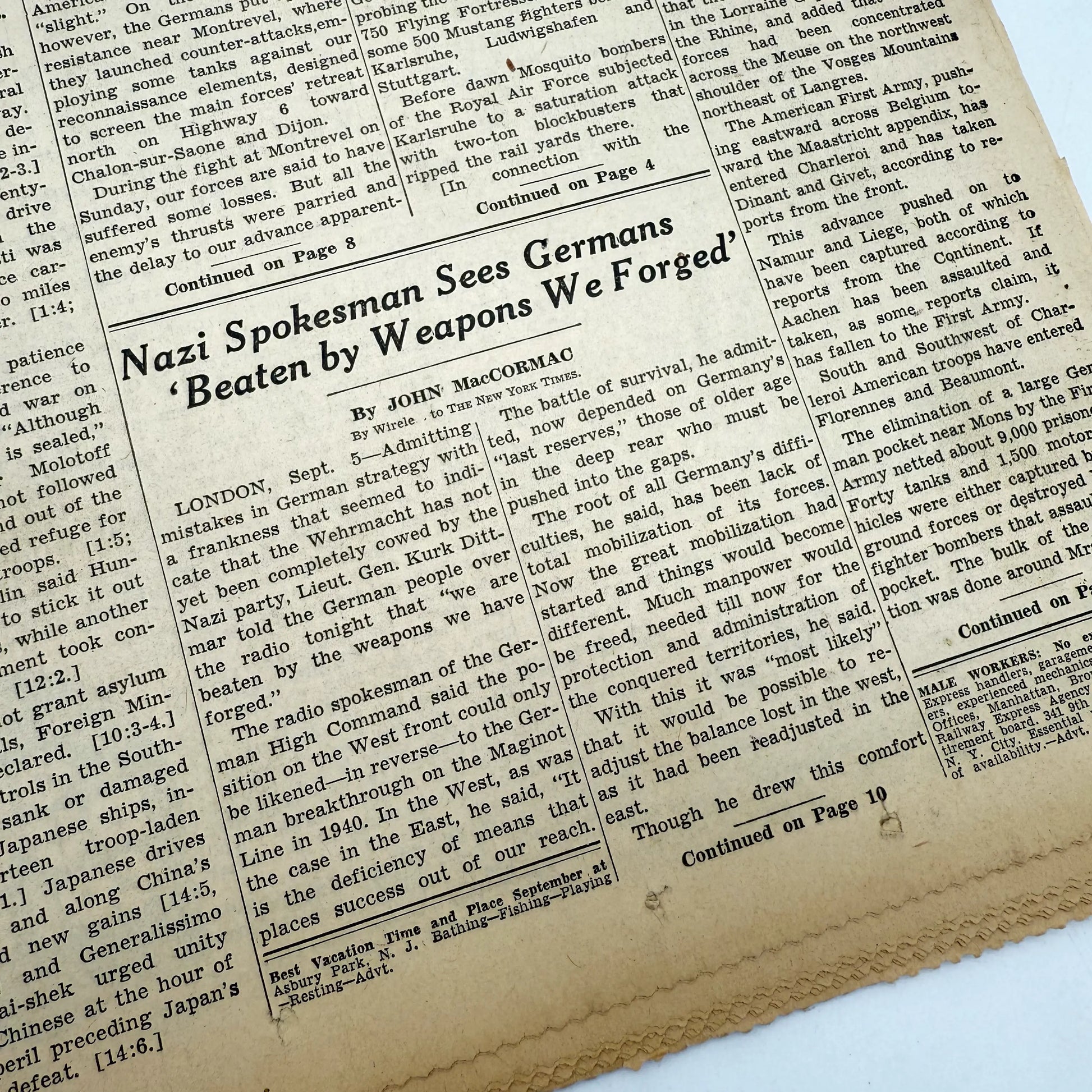 The New York Times — September 6 - 9, 1944 — Sold as a set